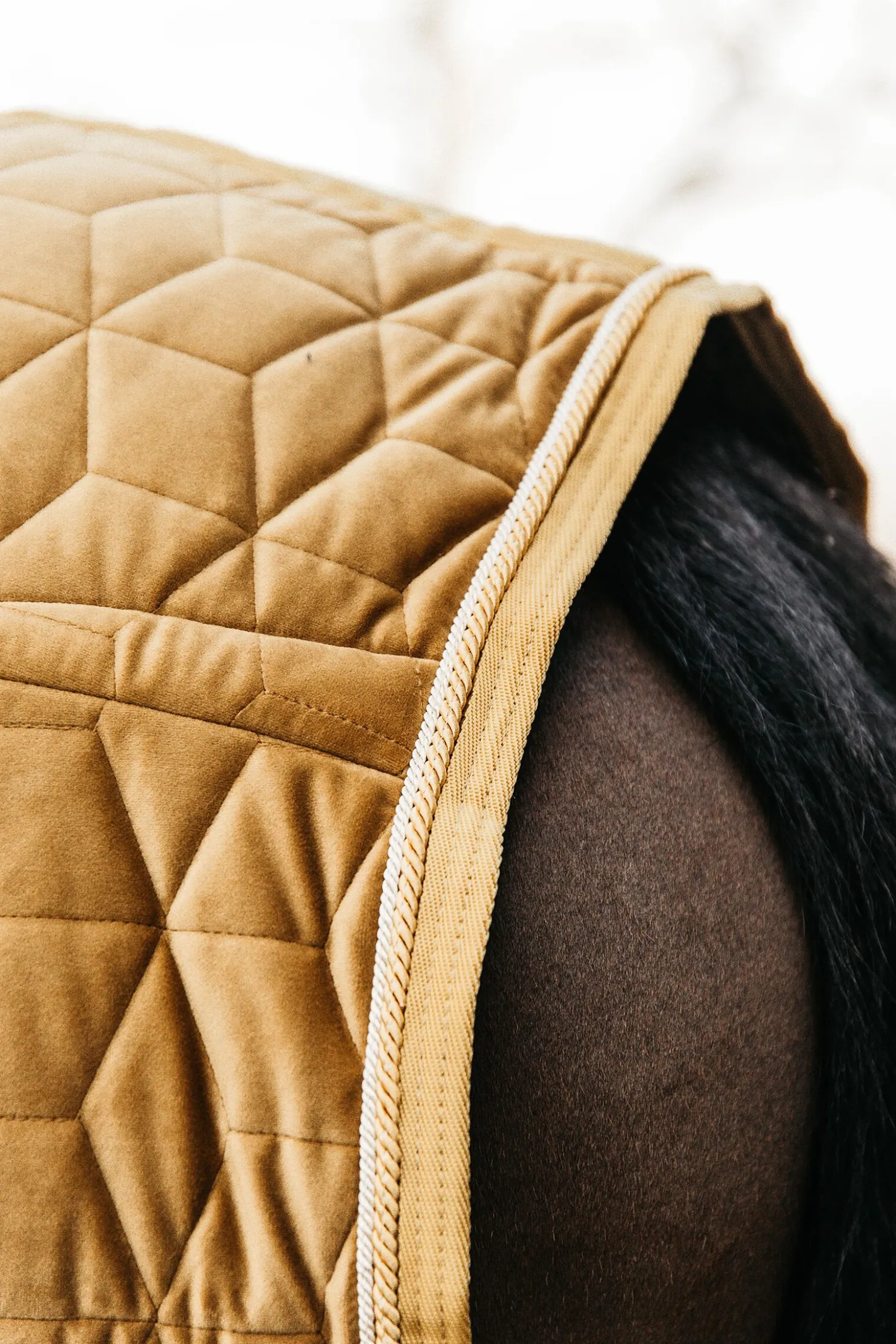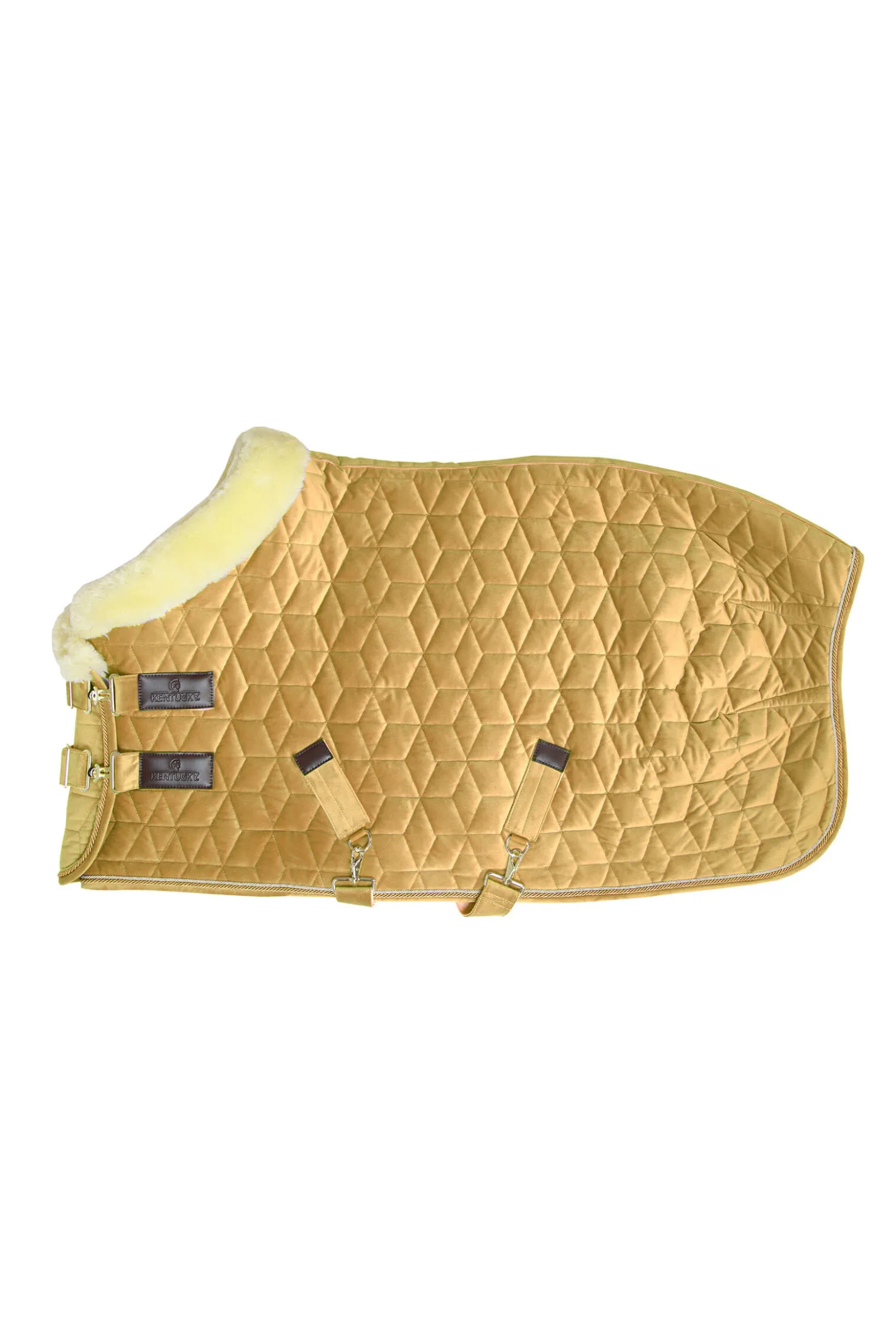 Hva er spesieltKentucky stevnedekken er deres signaturdekken og er ekstremt populært rundt om i verden.Ettersom Kentucky står for innovasjon har de utviklet et stevnedekken med sitt berømte fløyels-stoff.Dette dekkenet er et skikkelig blikkfang takket være fløyels-stilen og det elegante, kunstige saueskinnet på kragen!Stoff og materialeMed Velvet stevnedekken vil du utvilsomt skille deg ut i stallen.Dekkenet har 160 gram fyll og er perfekt å bruke om vinteren som et stalldekken hjemme eller på stevner.Utsiden av dekkenet har et mykt og elegant stoff og et sofistikert vattert lag.Kubevatteringen gjør det mye mer vanskelig for hestene å slite i stykker dekkenet.Innsiden av dekkenet har en innside i kunstig kaninskinn, noe som unngår gnagemerker.Det kunstige kaninskinnet skaper også små luftlommer som gir et isolerende lag rundt hesten din og holder den ekstra varm.Form og størrelseTakket være det kunstige kaninskinnet på innsiden av dekkenet vil Velvet stevnedekken holde seg på plass etter hesten har rullet eller ligget.Dekkenet kan festes med do doble frontspenner og to kryssgjorder som kommer med de kunstige lærlappene som er signaturen til Kentucky.