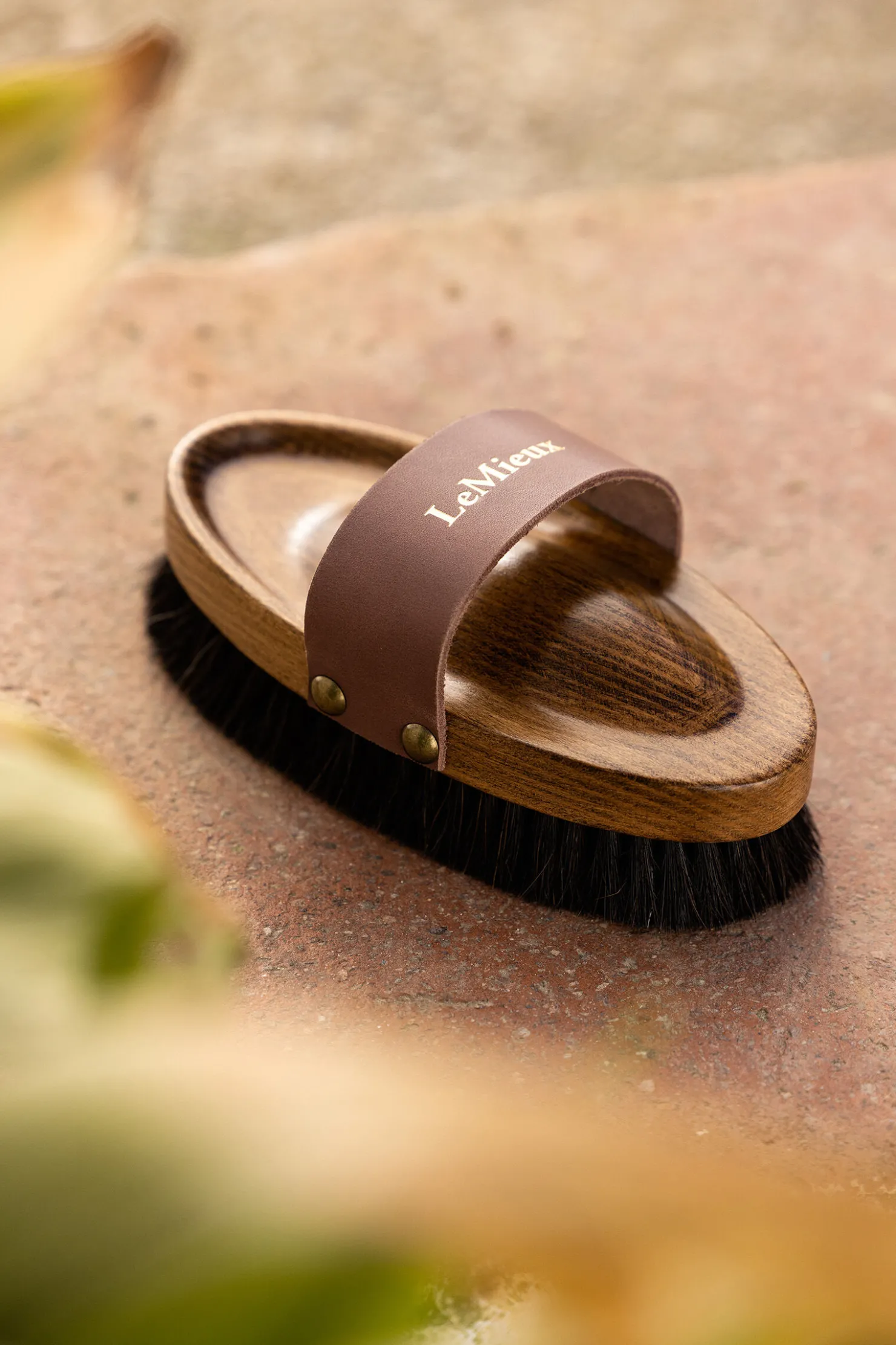 Laget av 100 % naturlig lammeskinn, gir denne kroppsbørsten en komfortabel, men effektiv rengjøring med hver brudgom. Den ytre ringen av naturlig og syntetisk bust sikrer en høyglans finish, mens det ergonomiske trehåndtaket gir et komfortabelt og sikkert grep. For et ekstra snev av sofistikert LeMieux-stil har vi lagt til merkevaremerke med gullfoliepreget til den myke lærremmen.