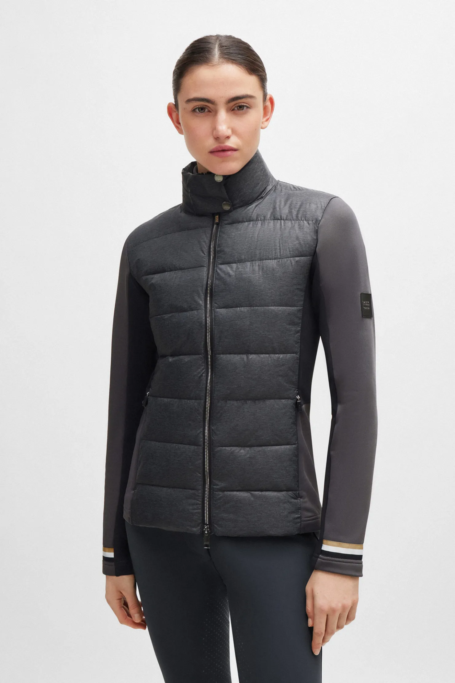 Lett 2. lags blanding av dunjakke og softshelljakke.Softshellfiber på ermene og sidepanelene, front og øvre rygg i dunfylt nylon.