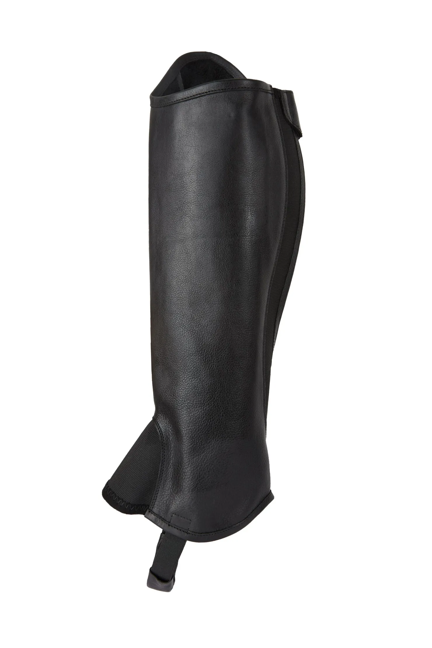B Vertigo Cosmos knechaps er laget av mykt lær, og er designet med elegant formede sømmer.En glidelås bak gjør de enkle å ta av og på, og strikk rundt glidelåsen gjør dem komfortable hele dagen.Trykknappen lukkes trygt rundt glidelåsen.En metallogo på toppen gir ekstra eleganse til chapsen.Kombiner dem med din favoritt B Vertigo eller Horze sko, og du er klar for alt!
