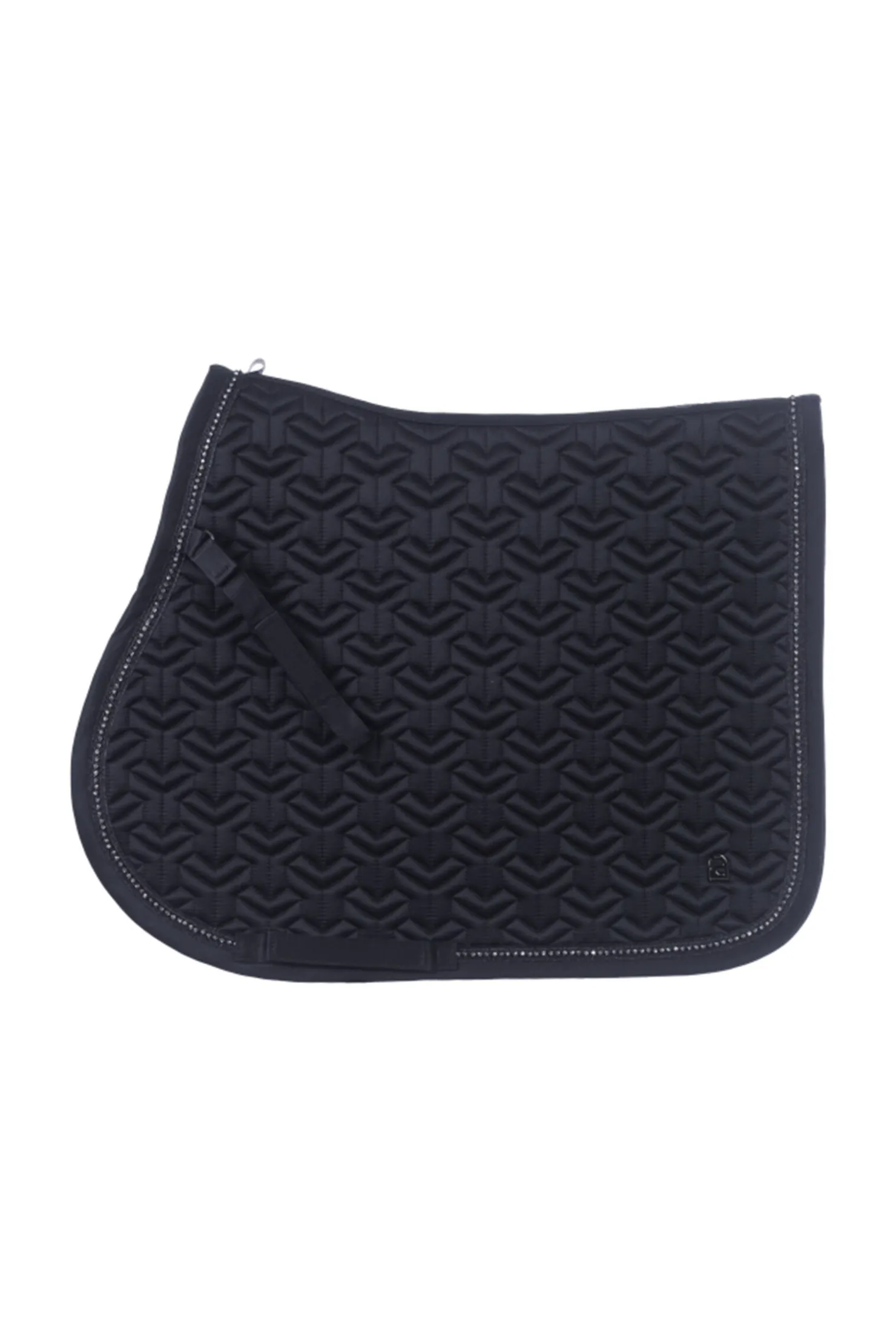 Salunderlag med forseggjort vattert design.Salunderlag med forseggjort vattert design i grafisk utseende.Elegant utseende takket være det skinnende materialet på oversiden.Det er et krystallbånd mellom de to båndene på kanten. Denne dekorasjonen rammer seteunderlaget perfekt inn og er et ekte blikkfang.På de bakre hjørnene er det en høykvalitets Cavallo-logo i gunmetal-look.Det hurtigtørkende og fukttransporterende kjølige komfortnettfôret er spesielt hudvennlig, kjølende, slitesterkt og tilbyr maksimal komfort.En formbevarende polstring gir salen en perfekt plassering på hestens rygg.De øvre og nedre gjordstroppene er kantet med satengbånd.De øvre gjordstroppene er avtagbare og de nedre kan festes med borrelås.