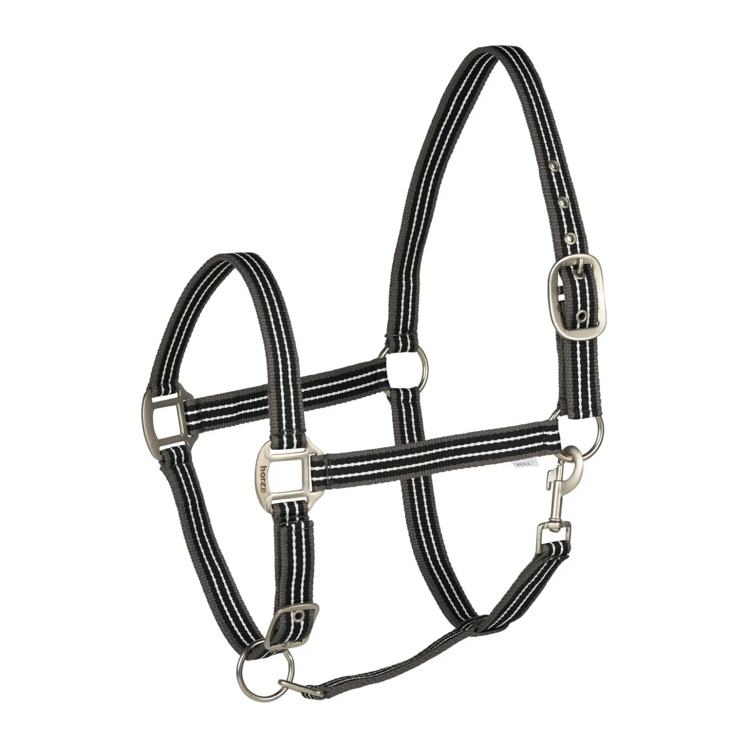 Denne nydelige grimen er laget av mykt materiale som føles komfortabelt mot hestens sensitive ansikt.Nydelige, stripete farger lyser opp utstyret ditt.En justerbar stropp over nakken sikrer perfekt passform, og spennen åpnes og lukkes enkelt og trygt.Satengoverflate på spennene gjør det friske utseendet komplett.Bruk den med Adepto leietau (#22663).