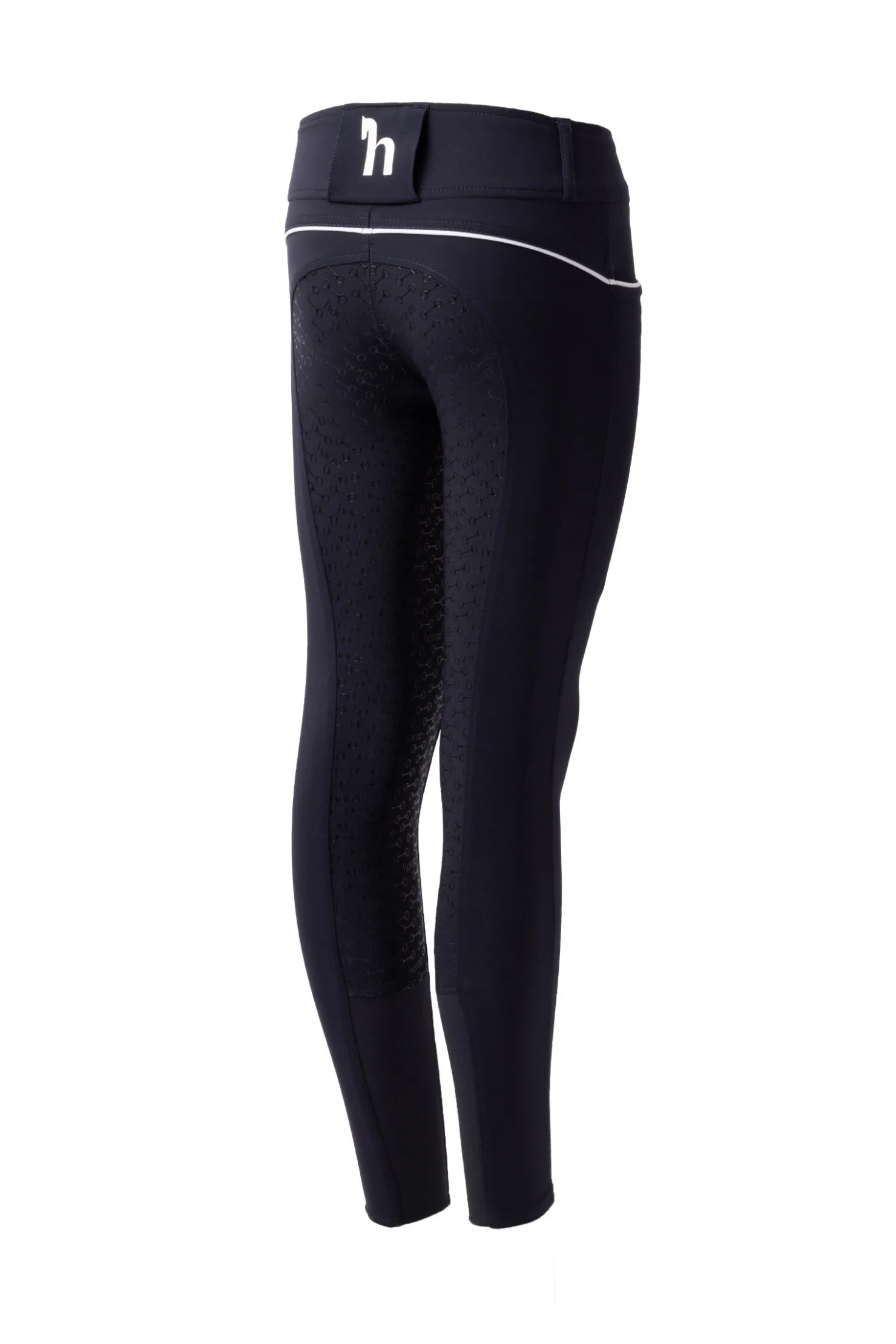 Horze Aubrey ridebukse kommer med et helforsterket sete med silikontrykk som sikrer det perfekte grep i salen.Det høye livet gir ideell støtte for barnets mage og rygg.Elegante kontrastbånd og logotrykk setter sitt eget preg på disse ridebuksene som får den lille rytteren til å se profesjonell ut.