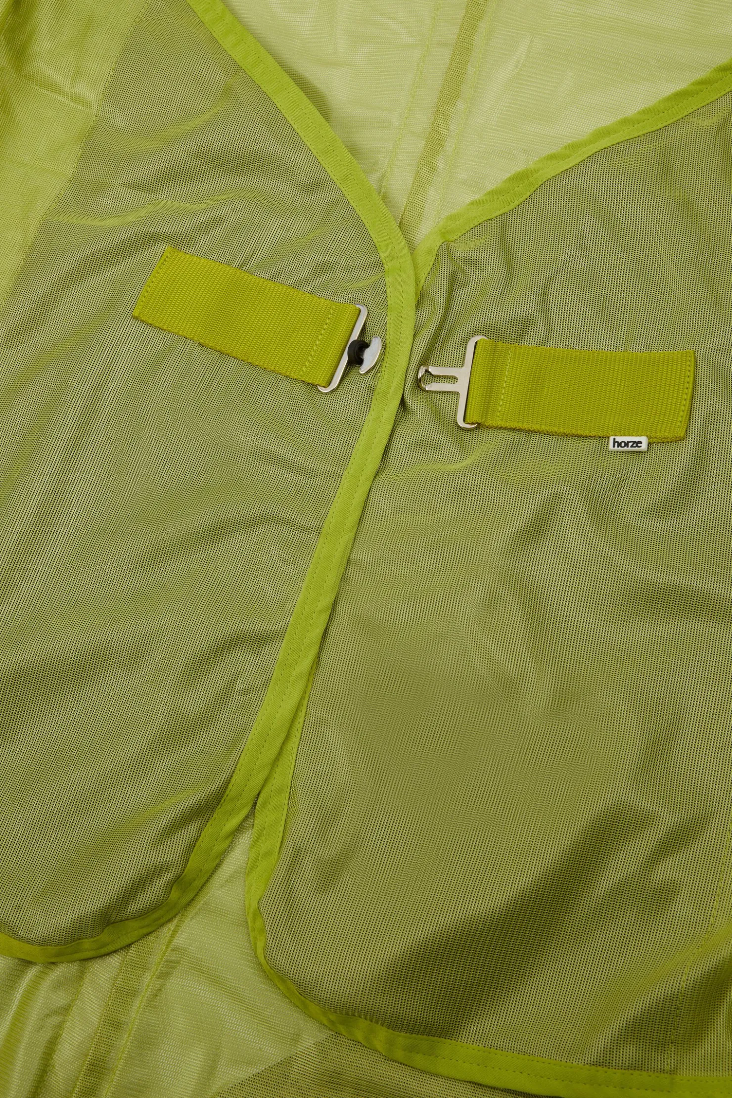 Det pustende fluedekkenet beskytter hesten fra insekter, uten at den forhindrer noen bevegelser.Mykt mesh-materiale er komfortabelt mot kroppen, og lukkes med t-spenner og kryssgjorder.Bruk den med Horze Mesh fluemaske (#22970) for fullstendig beskyttelse!