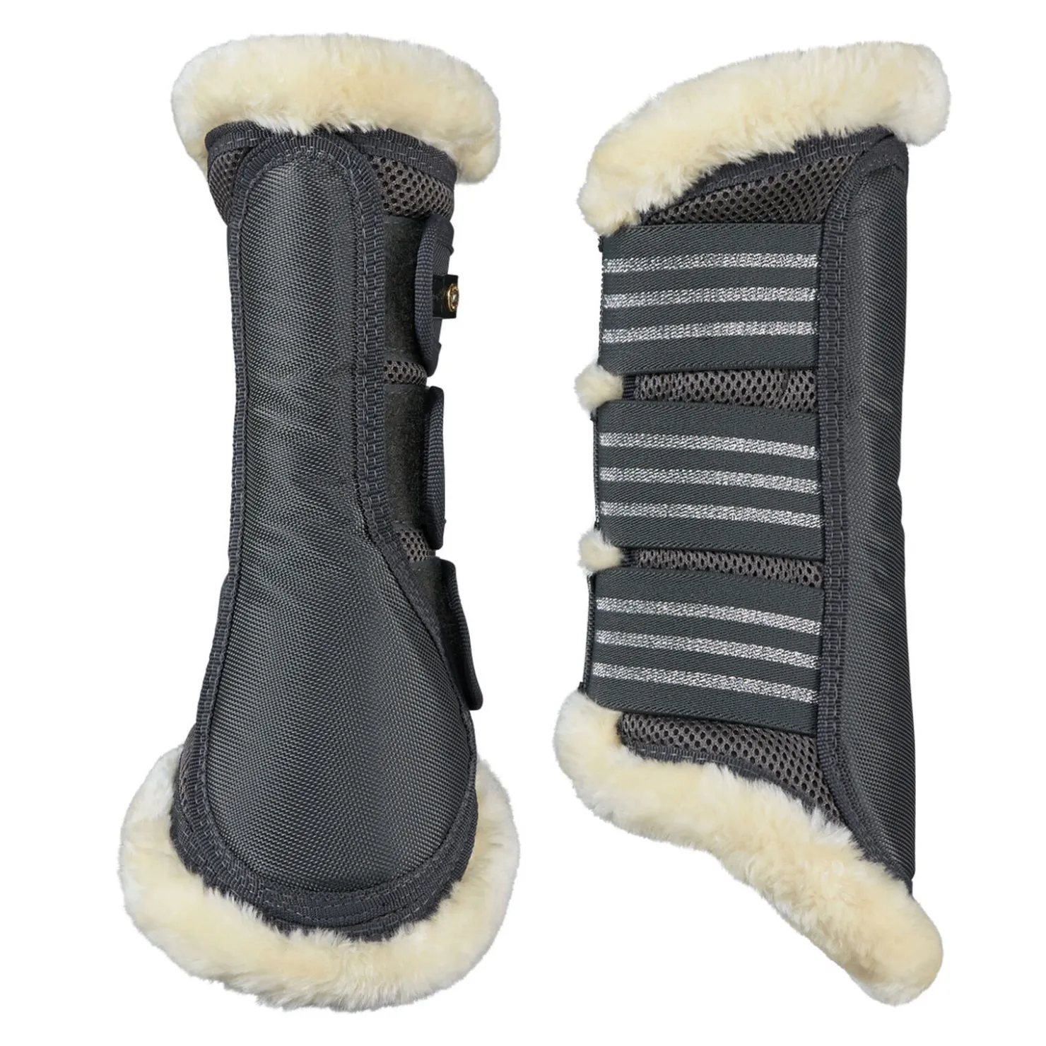 Horze Lincoln stryksokker er fôret med funksjonell neopren og kant i myk fuskepels.Sterke borrelåsfester holder dem på plass.Bruk dem med Lincoln sjabrak (#17396 eller #17346) for et komplett utseende.