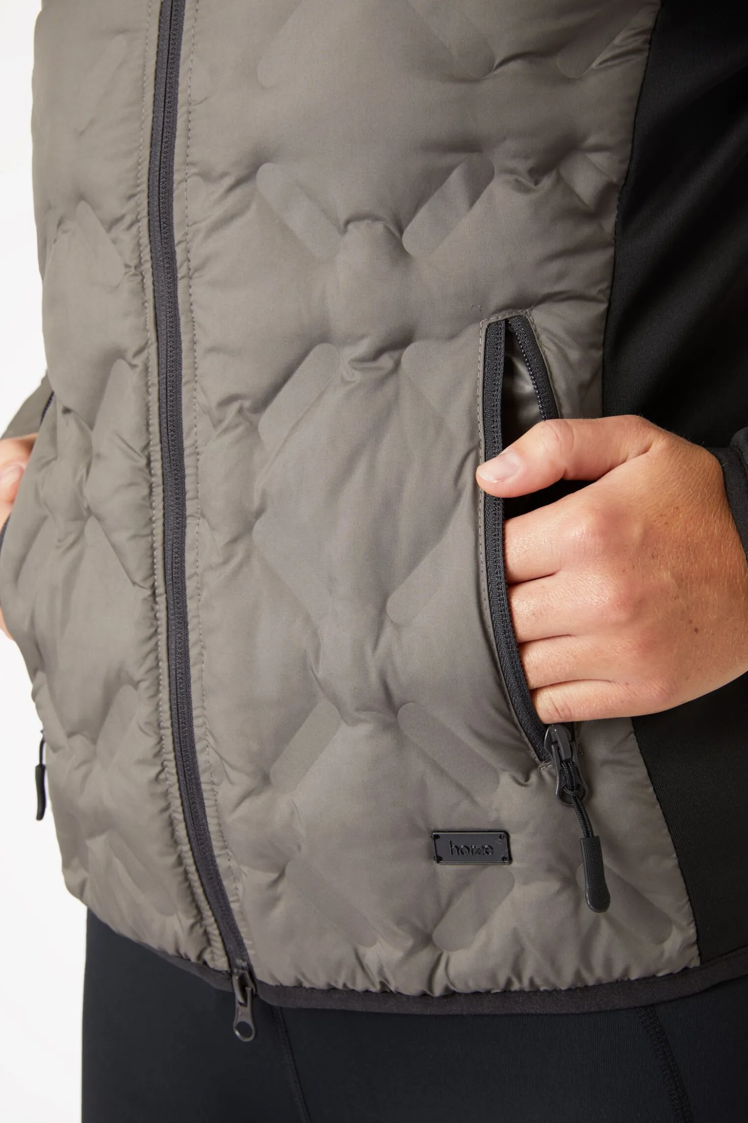 Horze Shelly lett jakke har lett vattering kombinert med elastiske sidepaneler for å gi utmerket komfort.Denne jakken er perfekt å bruke med jeans for et hverdagslig utseende, eller med dine favorittbukser for et pent høst-antrekk.Stoffet er vannavvisende og pustende, og lengden er perfekt i salen.