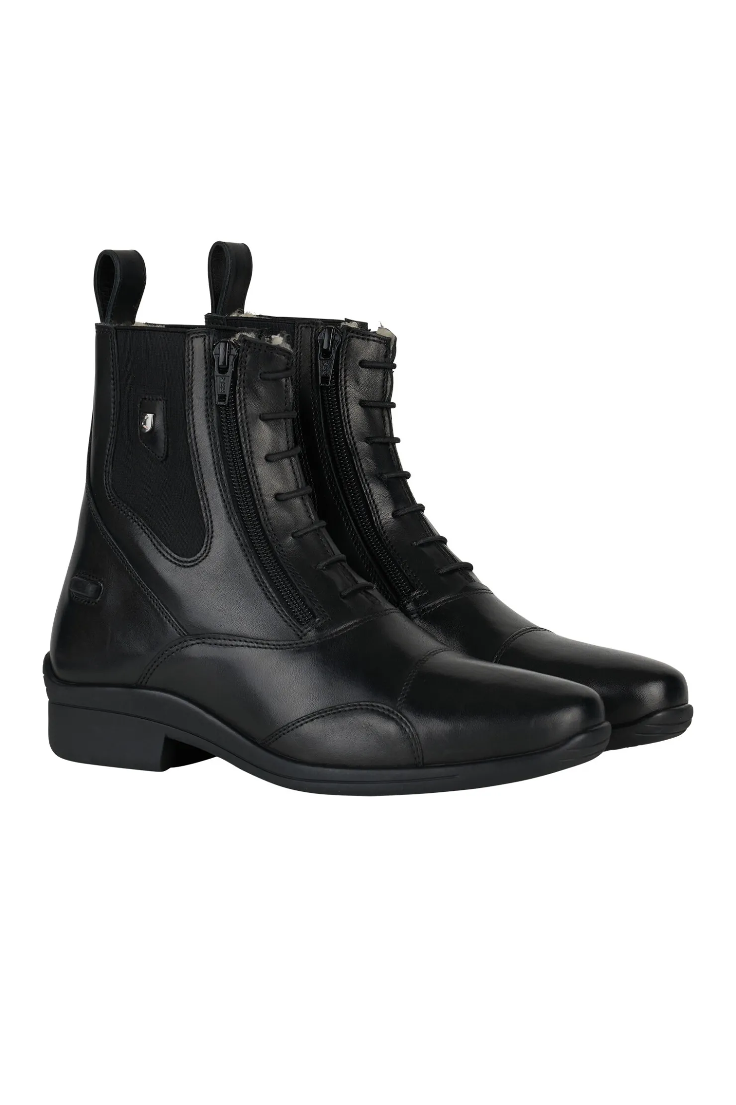 Horze Stockholm jodhpurs er perfekte sko å bruke sammen med chaps. Disse skoene har elastiske skolisser og et elastisk sidepanel for letthet og komfort. Lær i høy kvalitet kombinert med dobbel glidelås som gjør de enkle å ta av og på. Disse helfôrede skoene med 100% ull vil holde beina dine varme og behagelige på kalde vinterturer.
