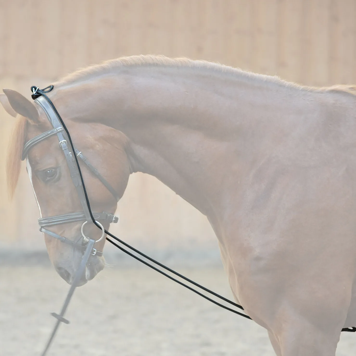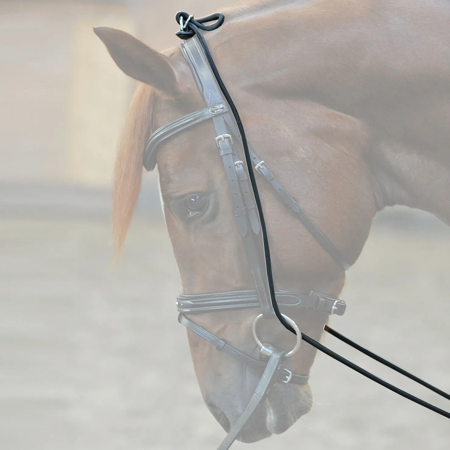 Hjelpestrikk i universal størrelse av elastisk materiale.Justeringsdelen av lær ligger på nakken til hesten. Strikken trekkes gjennom bittringene, og festes til gjorden mellom hestens frambein.Den foretrukne Kavalkade Bungie er av svært god kvalitet, og har en perfekt passform.