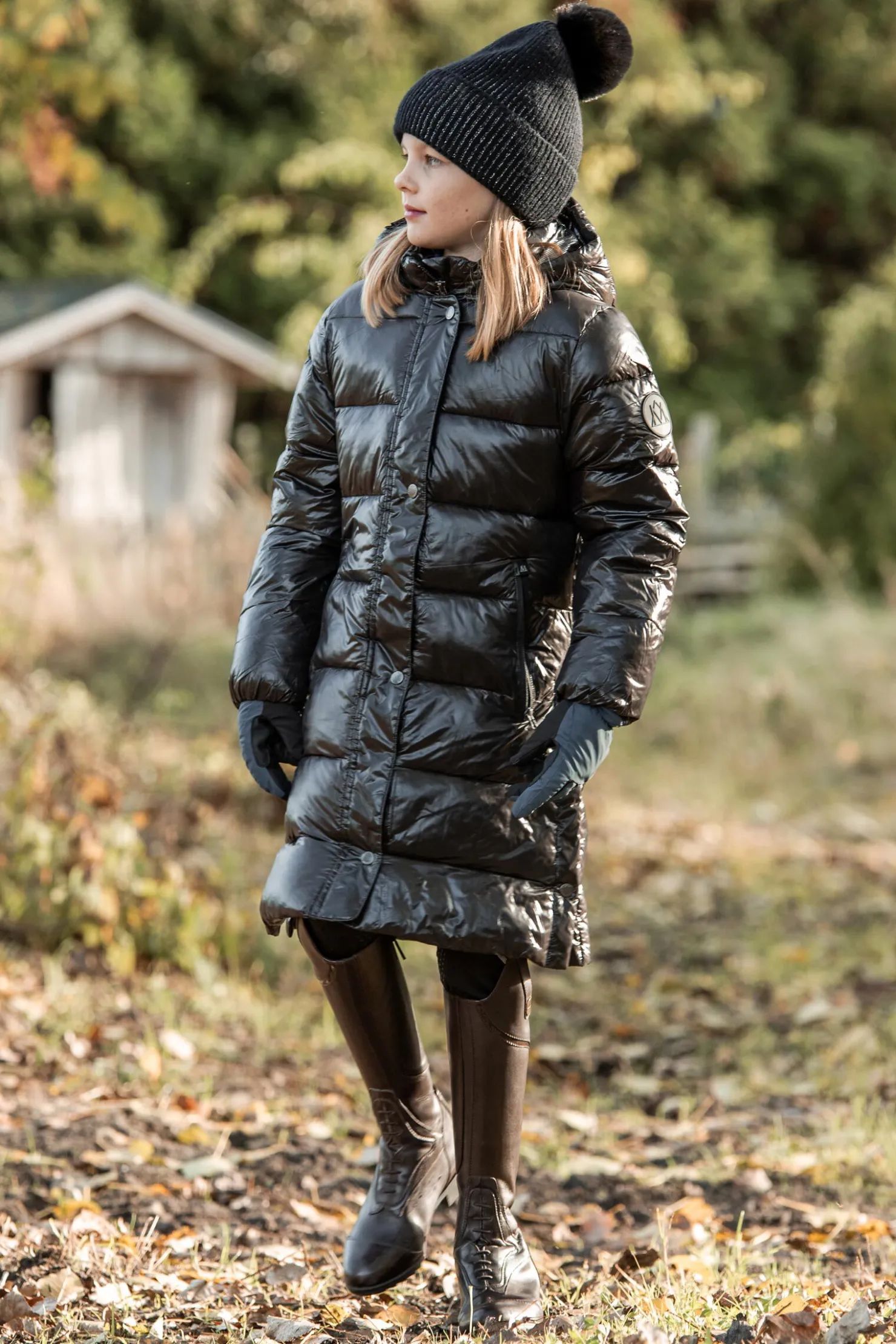 Lang varm polstret kåpe med høye splitt i sidene. Reflekterende detaljer, frontlommer med glidelåslukking. Beskyttende avtakbar hette med sølvfarget fôr.