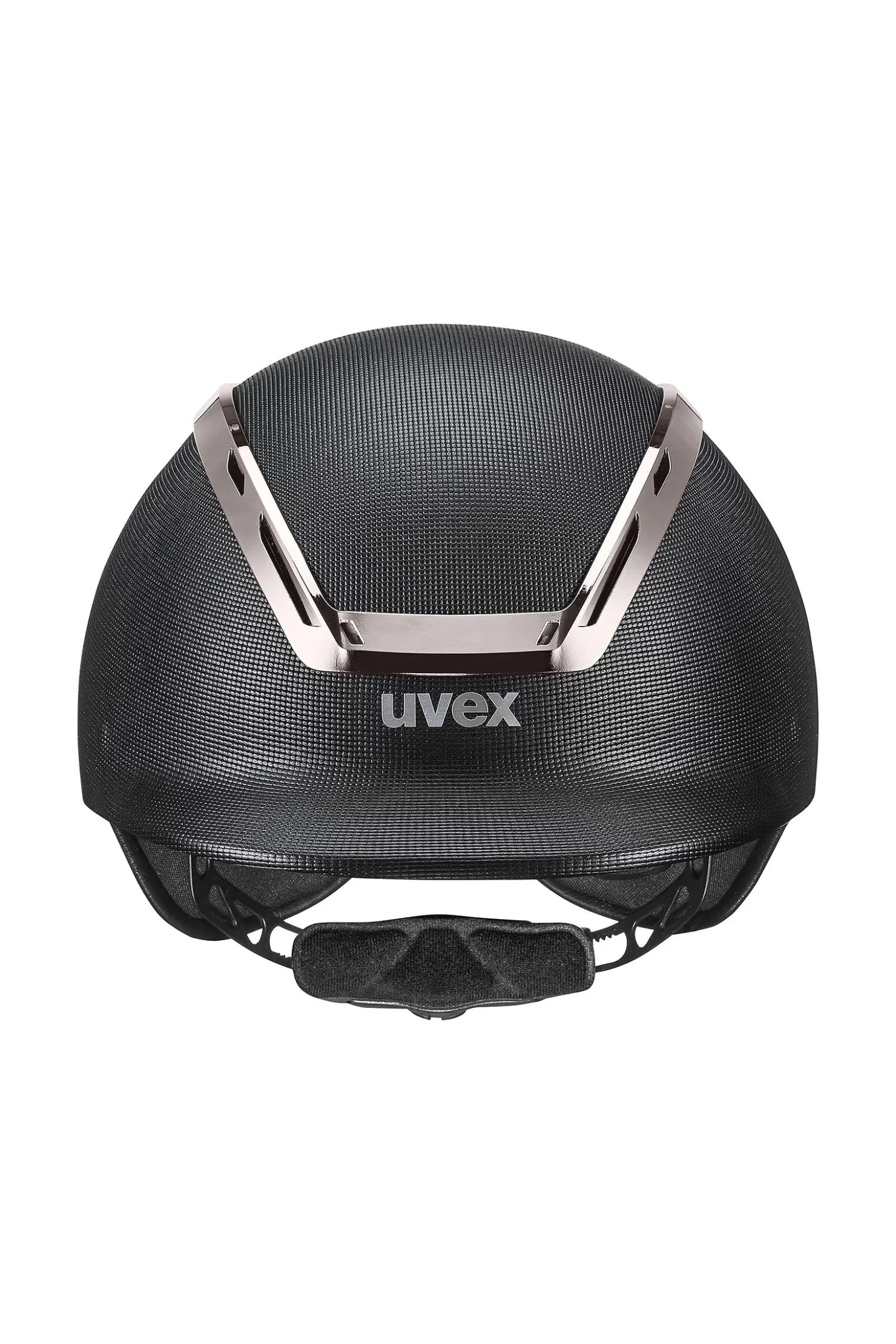 Denne hjelmen har mye å tilby 窶åde i utseende og funksjoner. Du vil elske det strukturerte veganske lærbelegget og den iøynefallende kromrammen i svart metall. Dette gjør den chic og fremhever den sporty stilen til denne ridehjelmen. Det rene utseendet kompletteres av vår nye justerbare Y-deler med veganske lærremmer. Resultatet: en høybeskyttende hjelm hvis hardshell-teknologi overholder de nyeste standardene samtidig som den sikrer optimal komfort. Chic og kul stil for store sportslige prestasjoner.