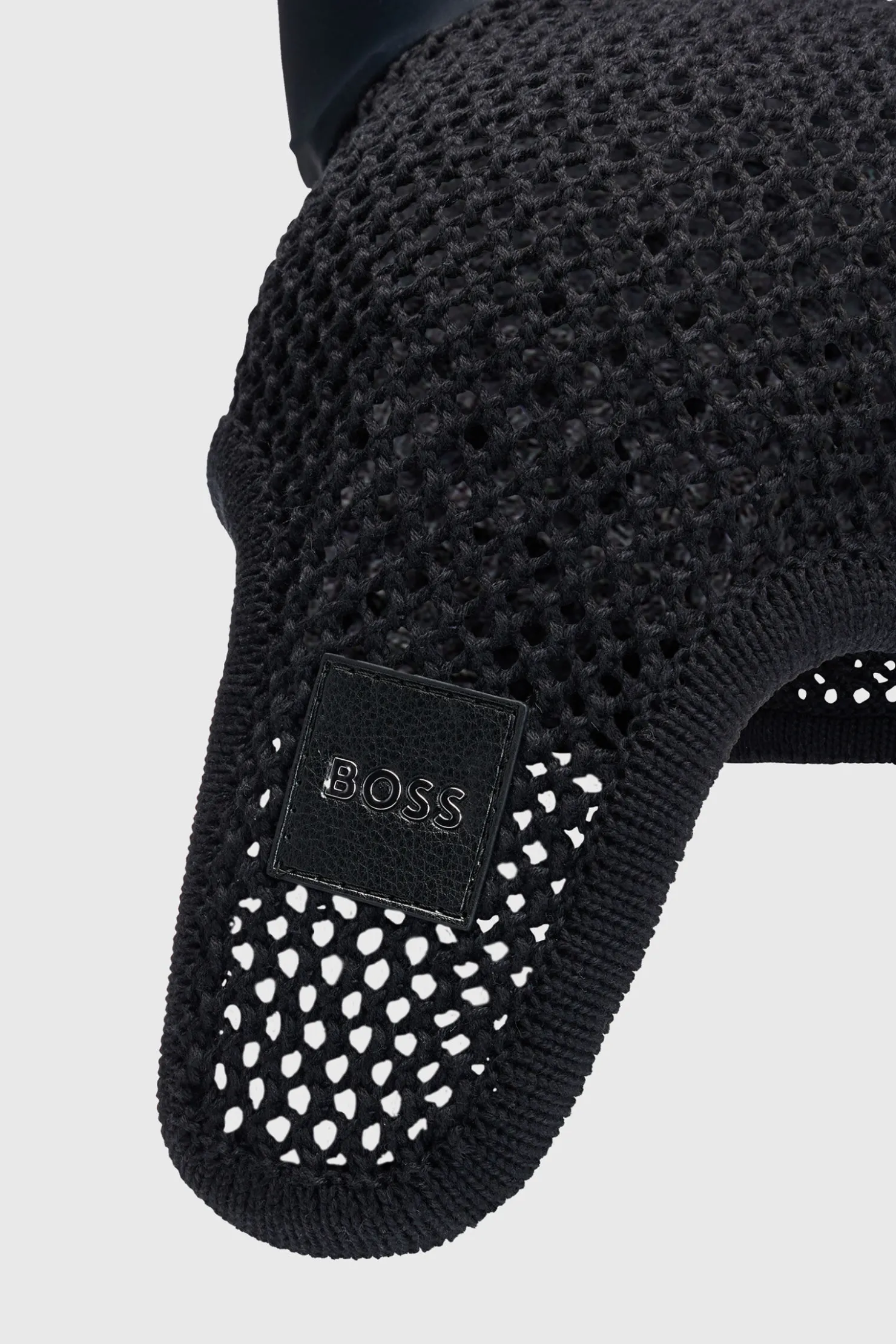 Heklet fluemaske i moteriktig utseende med BOSS-logo i kunstskinn.