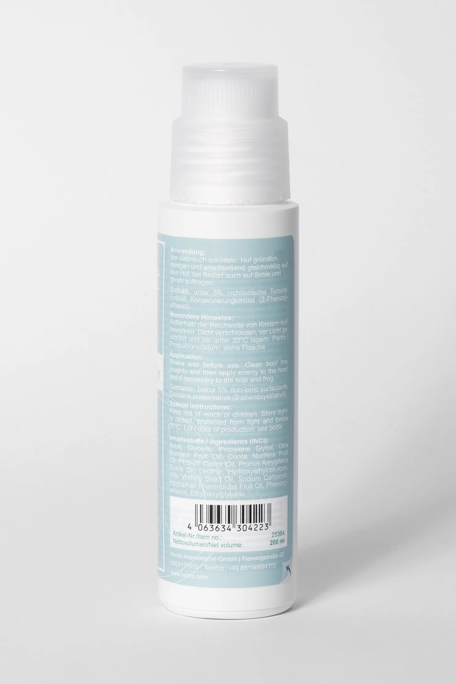 Hovkrem i en praktisk dispenserflaske for direkte påføring på hestens høver.