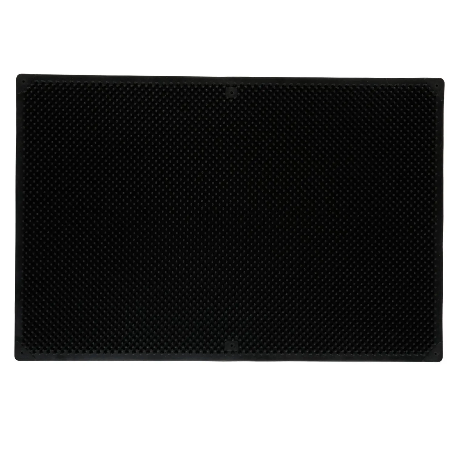 Denne matten er laget av myk, miljøvennlig gummi.Myke nupper gir komfortabel kløing og minsker irritasjoner i huden.Matten kan lett festes på boksens vegger.