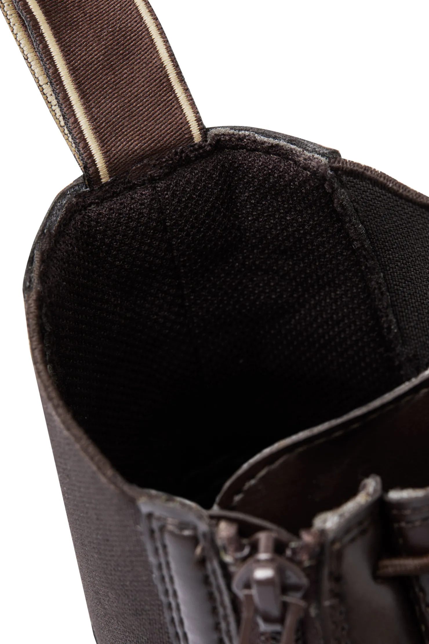 Laget av mykt lær og fôret med behagelig pels gjør at disse skoene er så behagelige å bruke. Glidelåsen på siden og drahempen gjør de svært enkle å ta av og på, men de har fortsatt lisser foran for et attraktivt utseende. Skoene har en høy ankel for god støtte når du rir. Dekorativ søm setter prikken over i’en på dette nydelige skoparet.