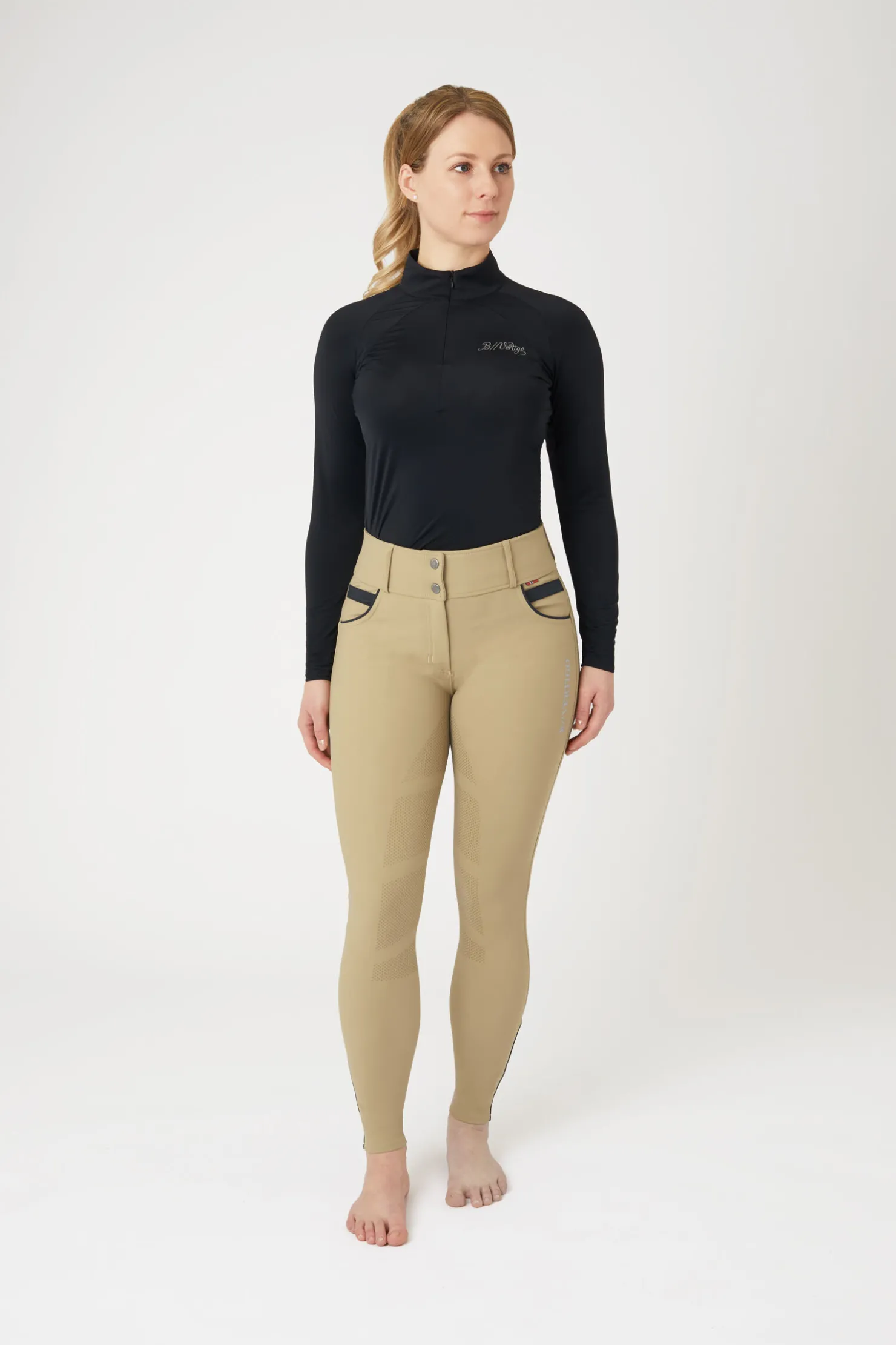 Morgana helforsterkede ridebukser har et høyt liv for mer komfort og stabilitet når du er i salen.De elegante stripene på lommen er et godt blikkfang og gjør helheten på disse formgivende, pustende og elastiske ridebuksene.Elastisk nederst på beinet som reduserer at den klumper seg i støvelen, og blir derfor mer komfortabel å bruke.Beltehemper gjør at du kan fullføre stilen med ditt favorittbelte.
