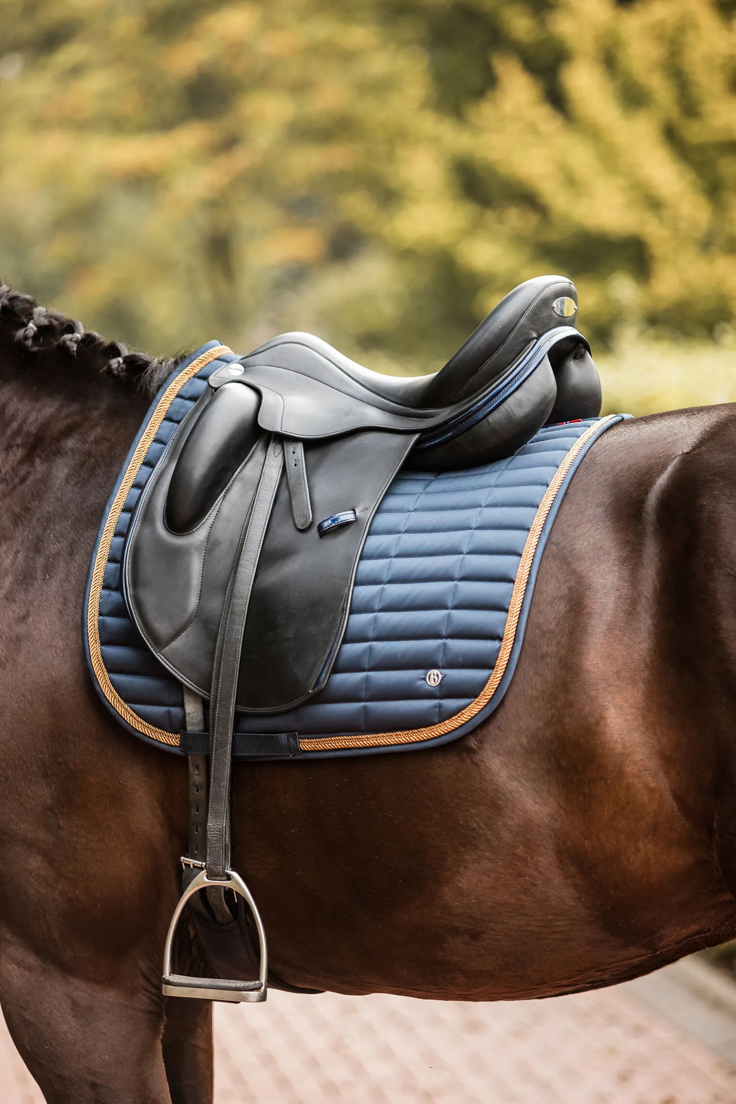 B Vertigo Quinn sjabrak er laget av et tett materiale som gir perfekt demping av bevegelser.Hurtigtørkende materiale som trekker vekk fukt.Rektangulær vattering og tre rader med bånd rundt kanten for et flott utseende.Den anatomiske formen langs ryggraden gir et sportslig preg.Bruk denne sjabraken med vår B Vertigo Quinn ørehette for et helhetlig utseende!Denne sjabraken er også tilgjengelig som allroundsjabrak.
