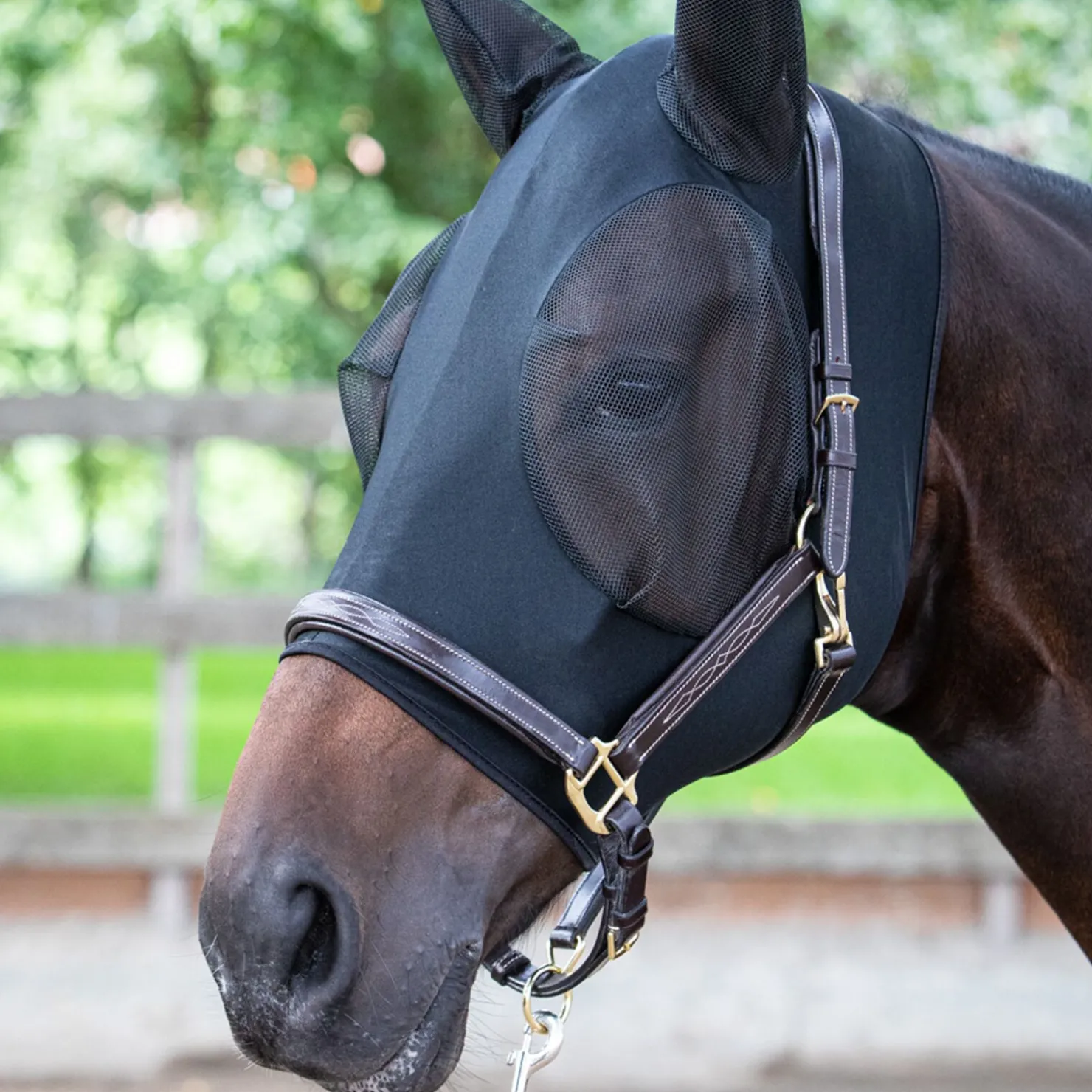 Fluemaske laget av myk lycra for en perfekt og komfortabel passform, mesh-materiale på områder rundt øyne og ører. Den kan også brukes sammen med et hodelag.Materiale: lycra og polyester.