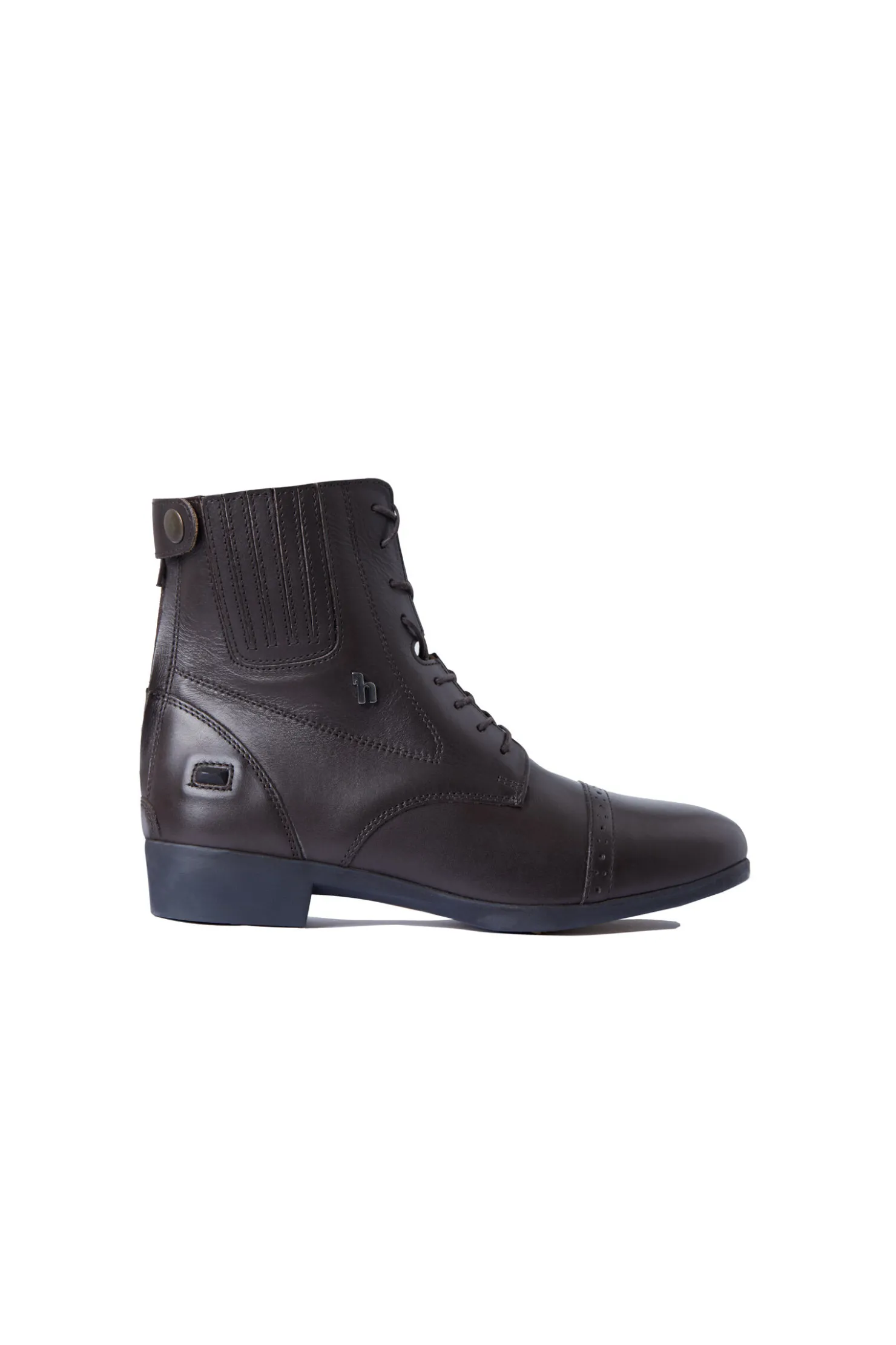 Rideko i lær med skolisser foran og glidelås bak, som gir et tradisjonelt utseende kombinert med at de er praktiske i bruk. Den myke og komfortable sålen er solid og støttende. Strikk i toppen av skaftet gir elastisitet og stil. Horze Equestrian er stemplet inn i siden for å matche resten av kolleksjonen.