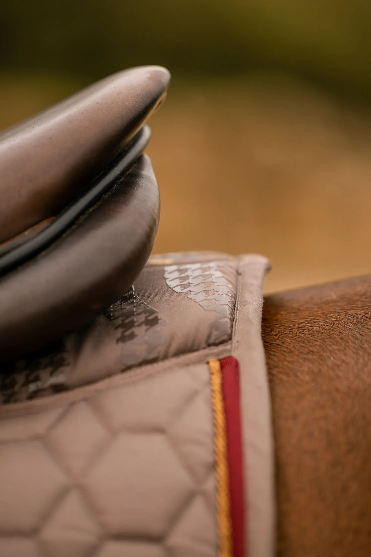 Den anatomiske utformingen på Horze Kenya sjabrak kommer med silikondetaljer for å forhindre salen fra å skli.Lett polstring under salen gir ekstra komfort.Fukttransporterende underside holder hestens rygg tørr.Tre rader med bånd og det tidløse designet gir et klassisk utseende.Metalliske detaljer gir et elegant preg.Bruk denne sjabraken med resten av vår Horze Kenya-kolleksjon for et helhetlig inntrykk.