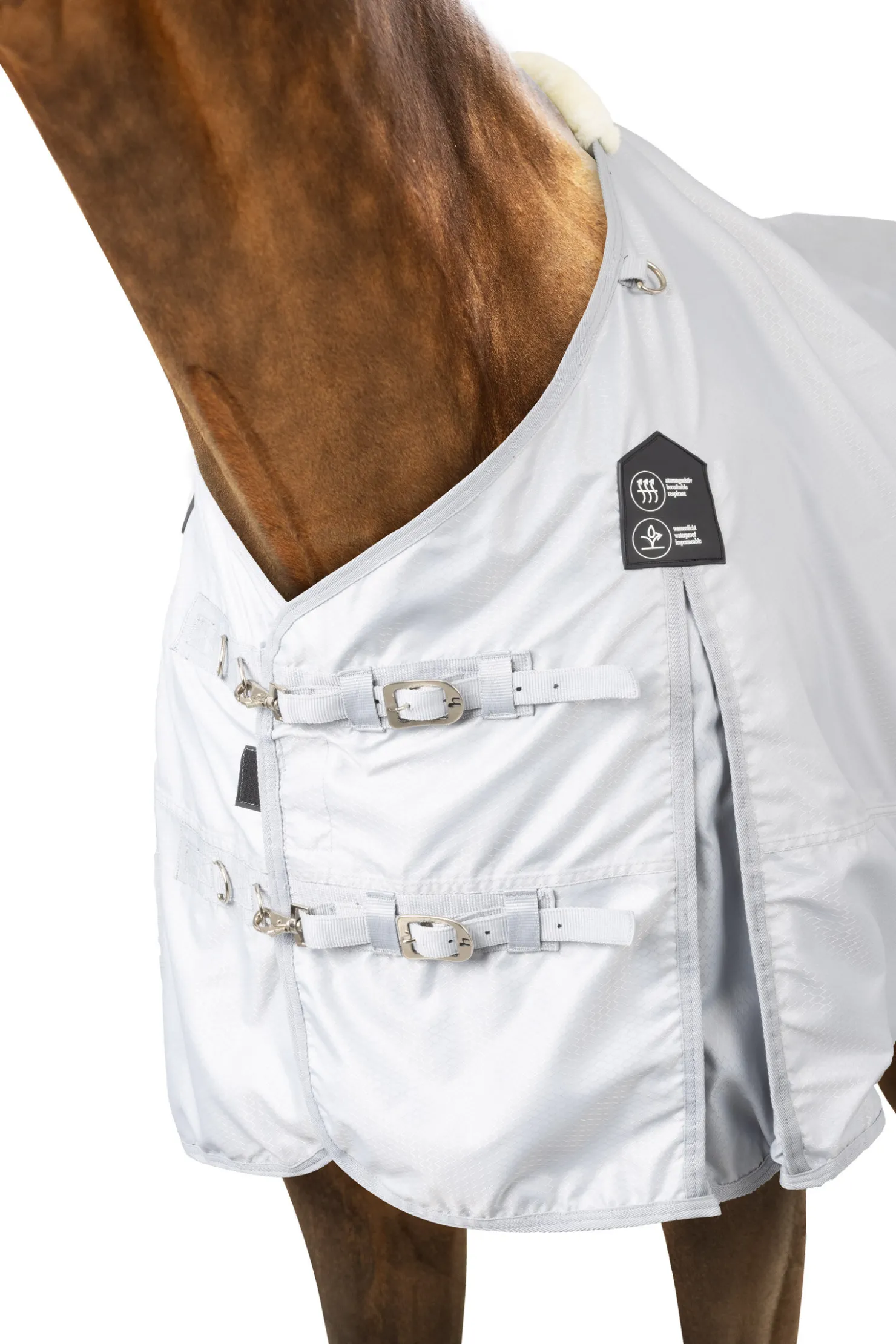 Sommeren kommer med disse forbipasserende bygene, og hesten din som går ute kan gå fra tørr og klar for å rides til dryppende våt på et lite øyeblikk. Hold hesten tør under de lette regnskurene med dette lette, pustende utedekkenet, og spar tid når du skal ut å ri. Holdbar rip stop stoff gjør at dekkenet holder hele sesongen.Nakkestykke selges separat (#24069).