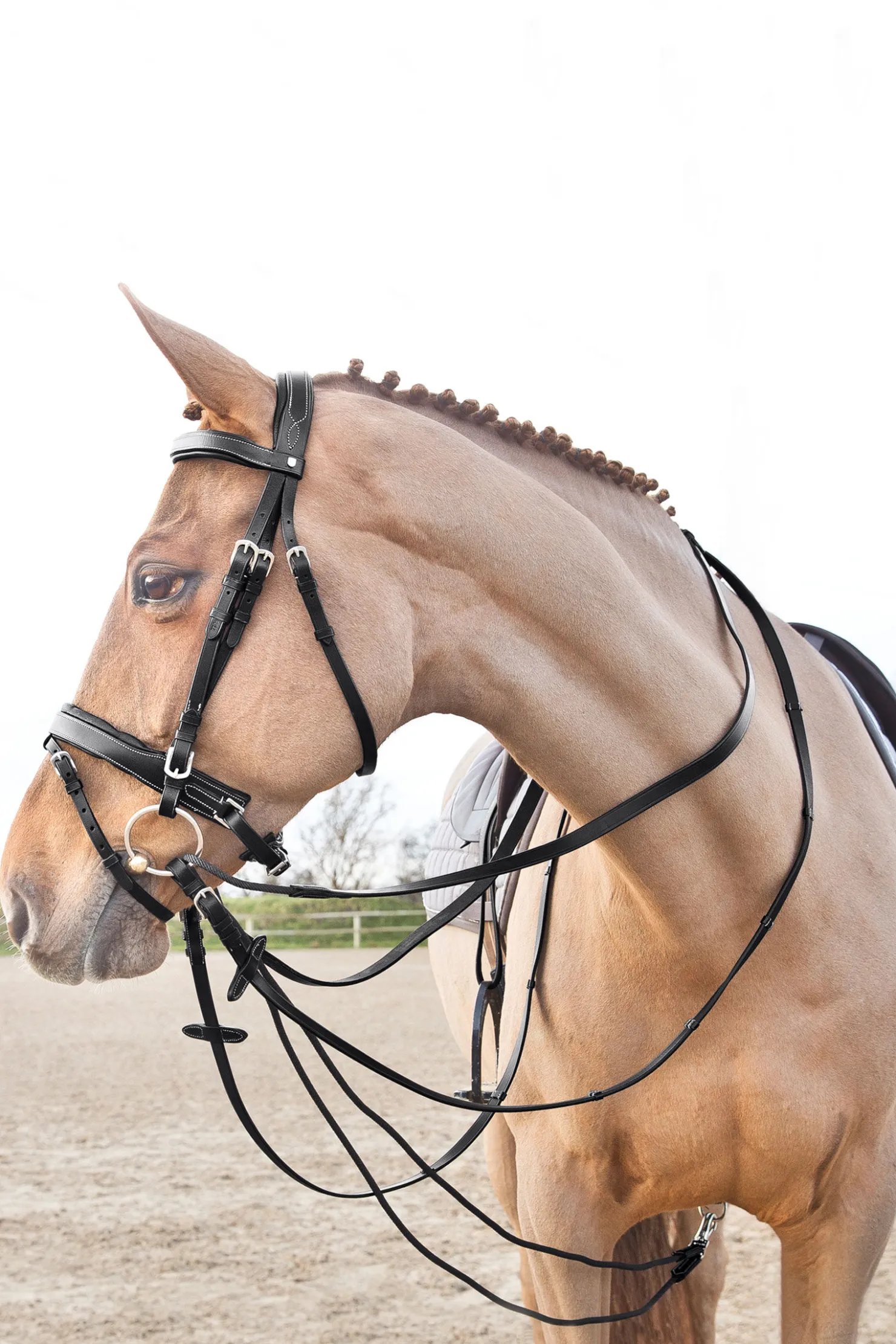 Use these draw reins for the horse in need of balance and suppleness training.En kombinasjon av lær og nylontau gjør at disse innspenningstøylene gir deg mild kontroll.Bredden på 16 mm er ideell for de fleste hester, og det avtakbare gjordfestet og sølvspennene er robuste.