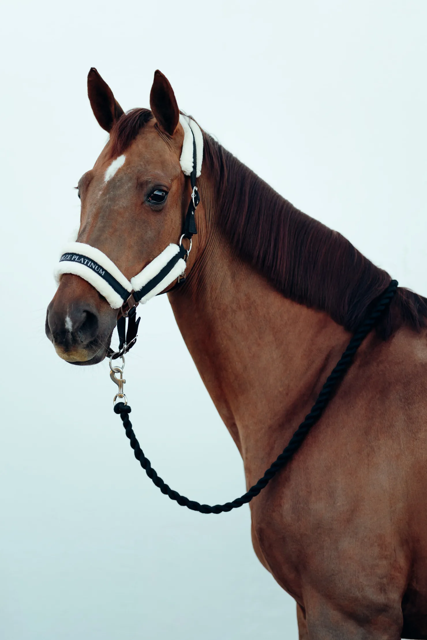 Horze Stanford grime er laget med supermyk fuskepels på nesen, nakken og kinnet, som føles komfortabel mot hestens hud.En sølvsnor i lurex på nesen gir et luksuriøst preg.Spenner i børstet stål gjør denne flotte grimen komplett.Bruk den med Stanford leietau (#22639) for et helhetlig utseende.
