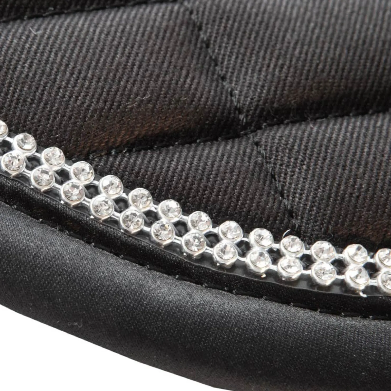 Pyntesteiner og satengkant dekorerer kanten av denne vatterte sjabraken.Det faste fyllet og det buede ryggområdet gir en optimal passform.Svetteabsorberende materiale nederst.