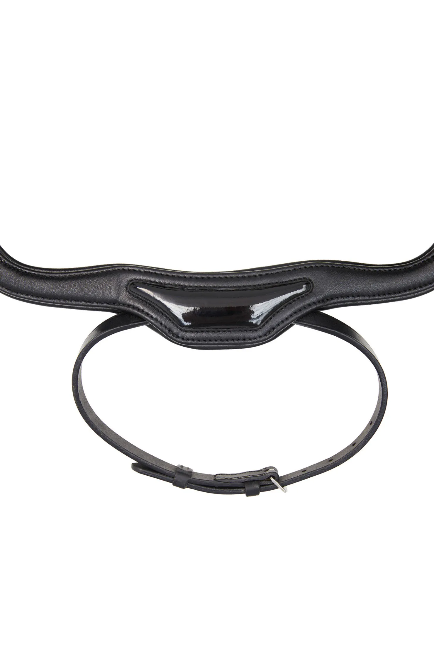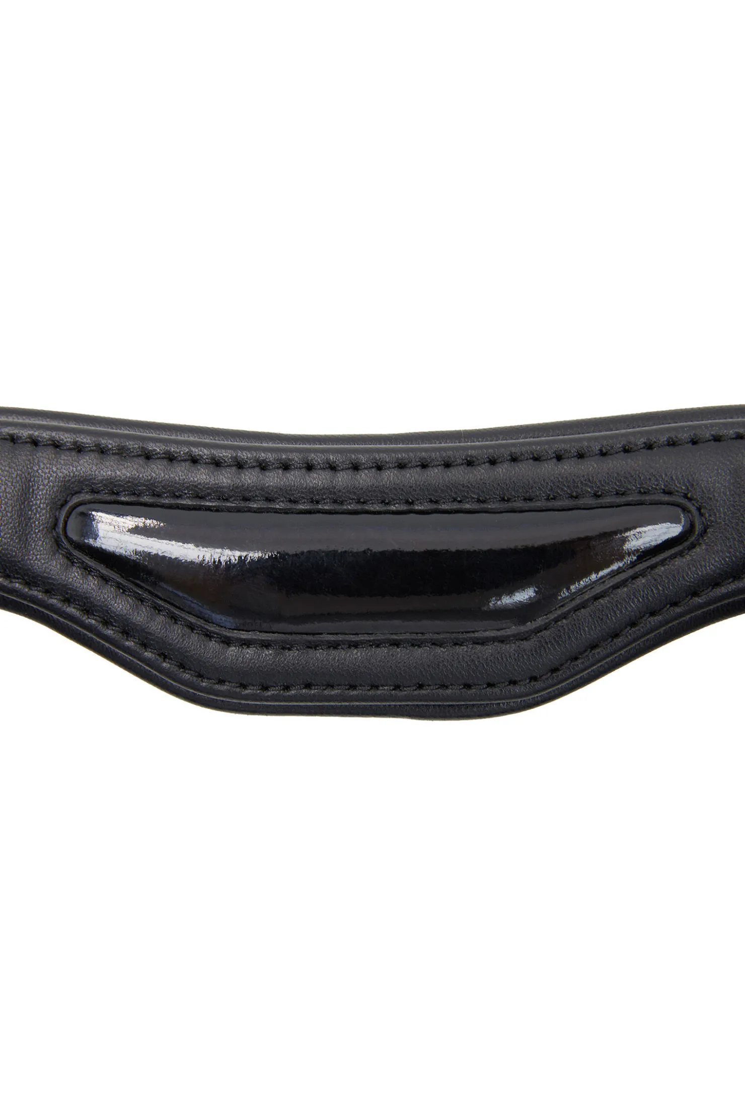 Luksuriøst hodelag med nedre nesereim, med svarte lakkdetaljer i læret.