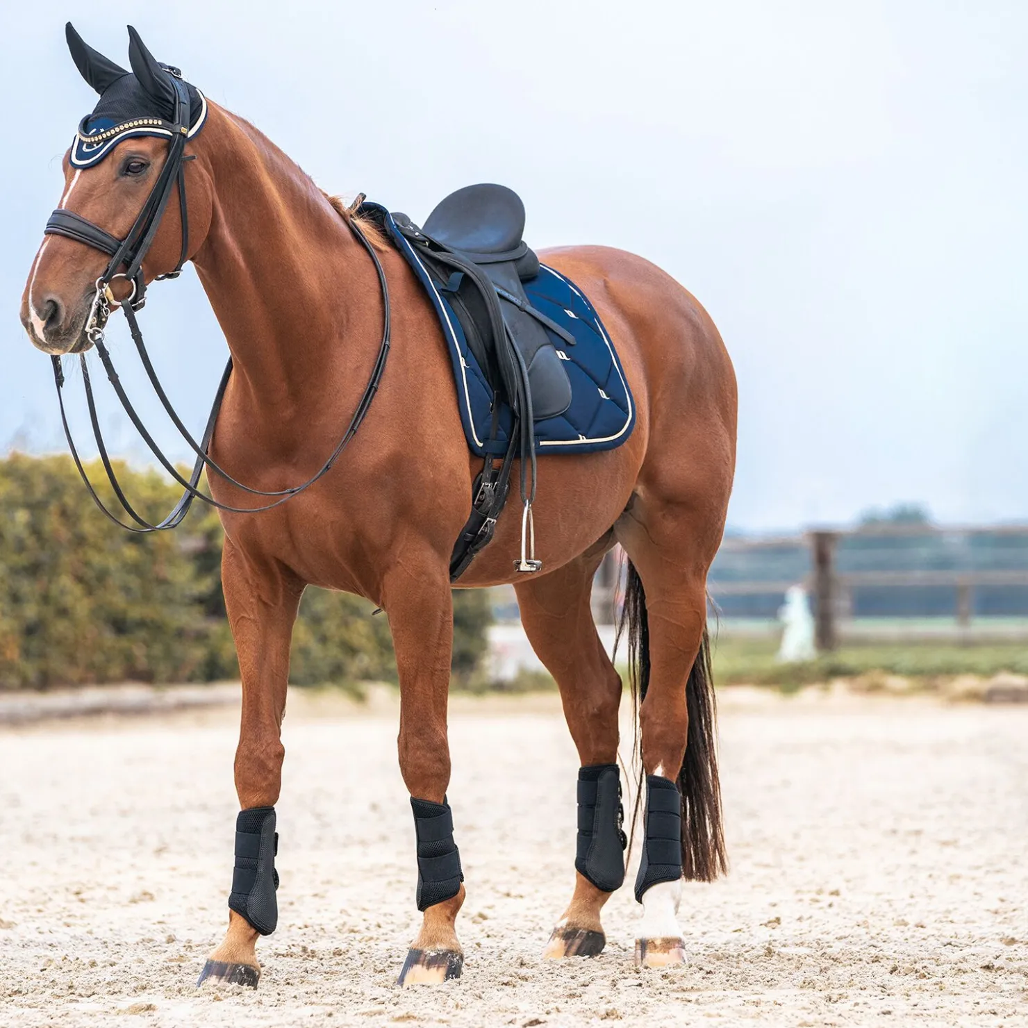 Feel fabulous, Feel the difference with Nights Collection Saddle Pad. Lined in our new innovative and powerful waffle fabric with Welltex® technology. Our new waffle textile has the highest emissivity* values that has been made by us. This may provide your horse better conditions for performance. Infrared energy can help your horse´s muscles to carry you as a rider. May help increasing blood flow and relieving stiffness over the back and we hope that you and your horse will experience the difference. Two layer filling for shock absorbing and breathability. Made with our famous No I design to give the wither space and reduce pressure on the spine.