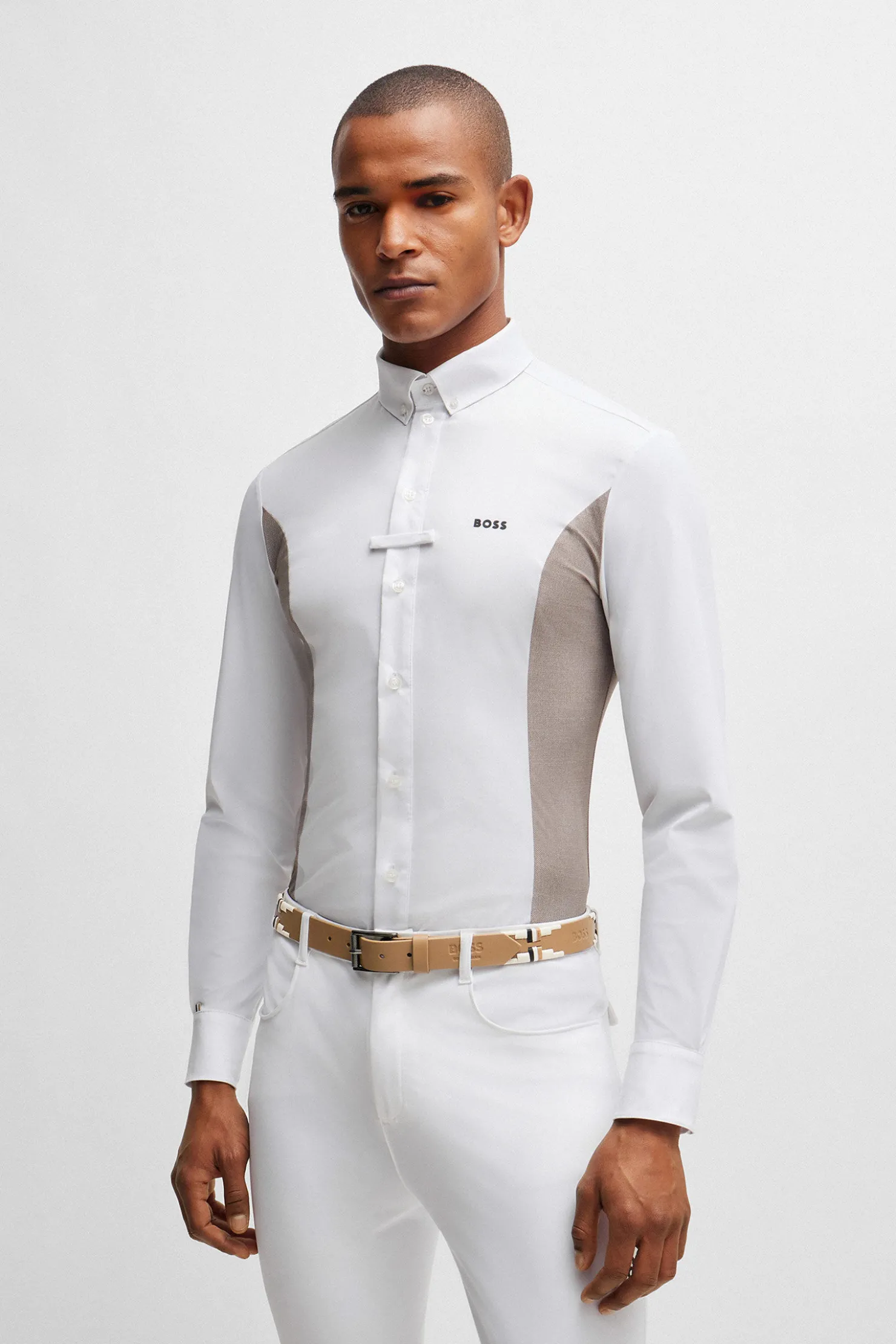 - Preget med BOSS-logoen mellom de gjentatte broderimotivene