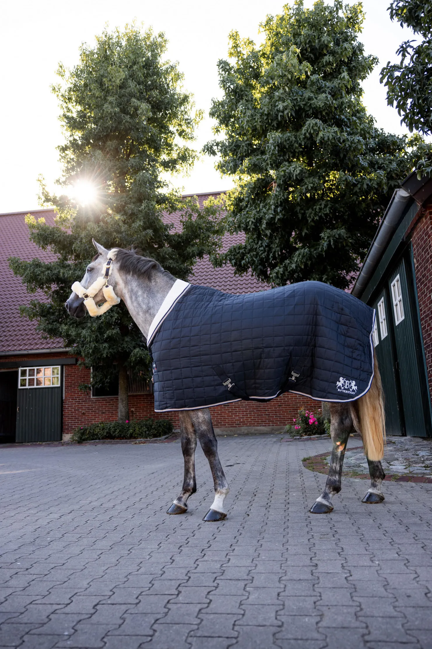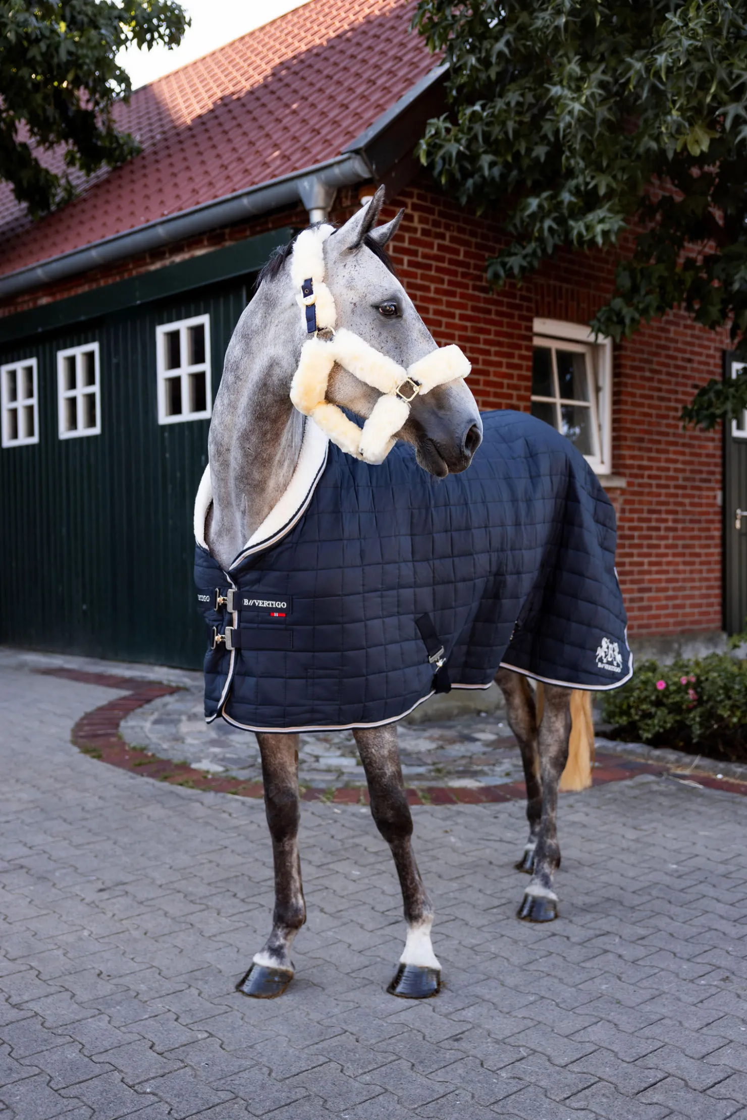 B Vertigo Theo dekken med myk krage i fuskepels ser ikke bare elegant ut, det er også funksjonelt og varmt.Fyllet holder kulden i stallen borte.To frontspenner, kryssgjorder og halesnor holder dekkenet på plass.Den pent broderte logoen gir et elegant preg.