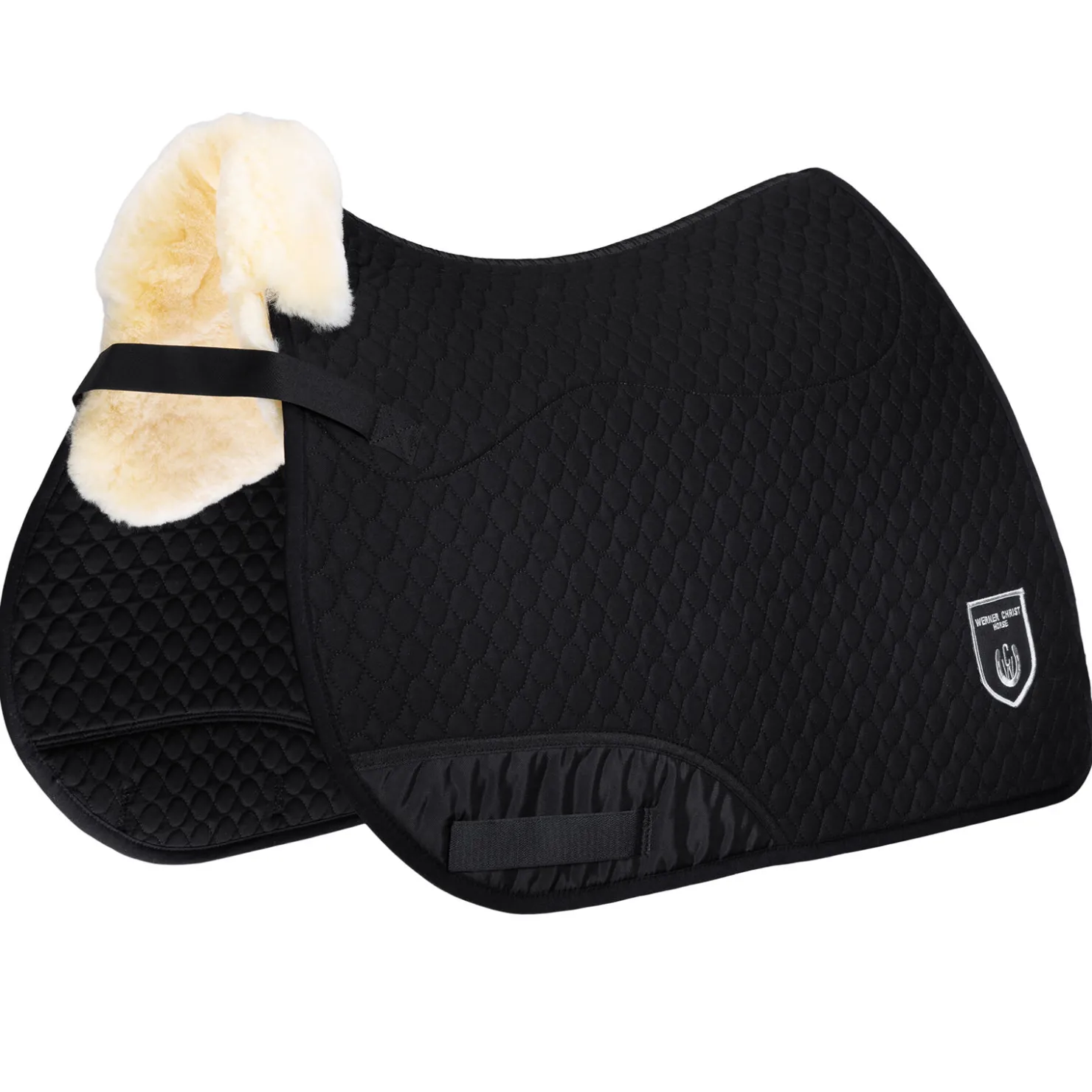 VS-Allround. Undersiden er av ekte saueskinn med en ullhøyde på omtrent 30mm. Salkappene er ikke fôret med saueskinn. Alle salunderlag er laget i vårt spesielle polstrede stoff. Holdes på plass under salen ved å tre gjorden gjennom stroppene nederst på salkappen. Borrelåsfeste. Nylonbelegget hindrer gnisning som ofte forårsakes av salgjorden. Foran er sauefellen trukket opp på oversiden som en kant, noe som letter plasseringen av salen. Kan vaskes i maskin med spesielt vaskemiddel for sauefell. Tåler også tromling. Vi anbefaler vårt vaskemiddel «C7». Vennligst respekter våre vaskeanvisninger.