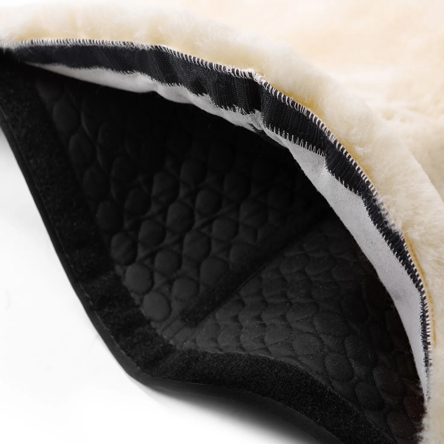 Nedsiden av Westernsjabraken er helt dekket av ekte lammeskinn. Overdelen er laget av vårt spesielle sjabrakstoff. Lommer er tatt med for å huse spesielle kompositt skum innlegg, som vi også leverer og som gjør at deler av salen kan polstres individuelt. Nylonbeskyttelsen bidrar til å hindre gnag rundt gjorden.