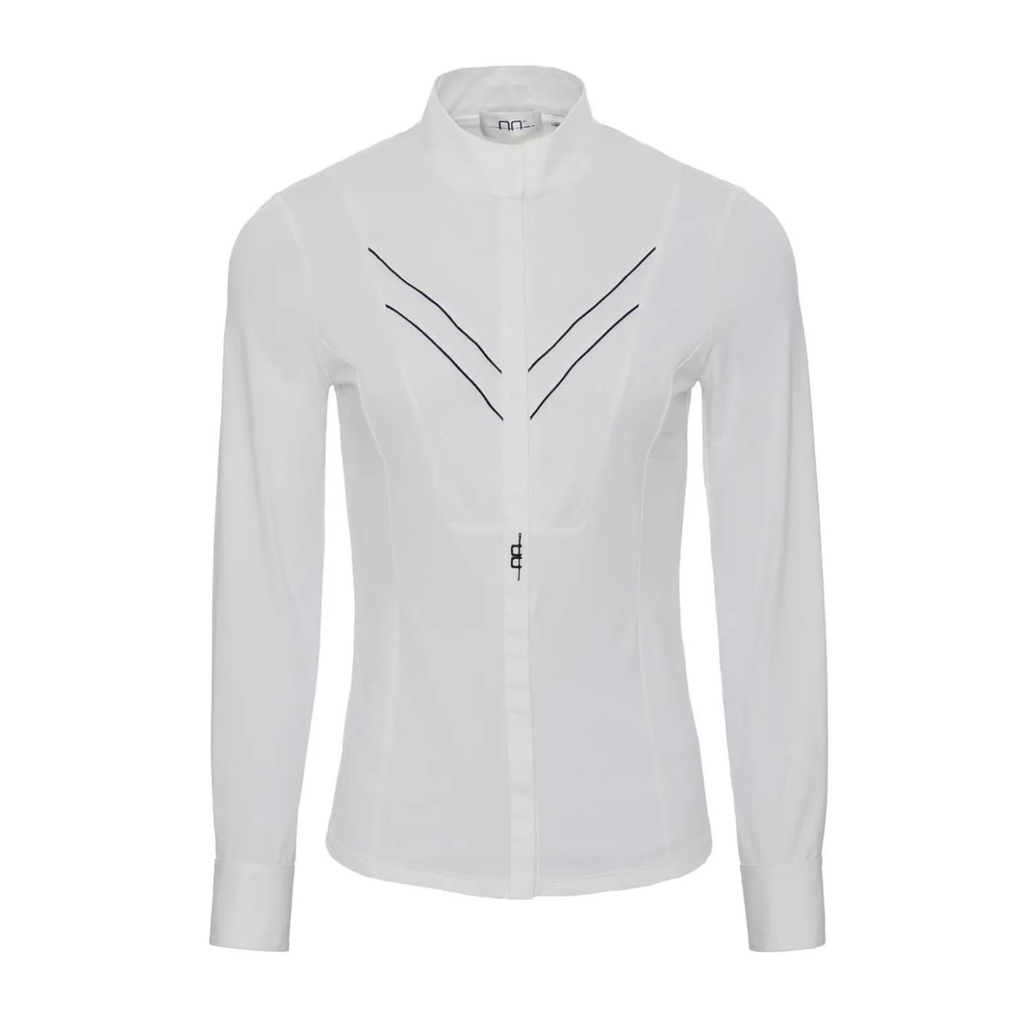 Luksuriøs stevneskjorte til dame, med stående krage og pustende mesh foran.Uten skuldersømmer for maksimal komfort.Knappefeste i hel lengde foran, med magnetfeste på kragen.Det luksuriøse, elastiske stoffet gir en komfortabel passform, og er myk og behagelig.Krage og ermer er i bomull for et klassisk utseende.ADVARSEL: Magneter kan forstyrre elektroniske enheter, slik som pacemakere og defibrillatorer.