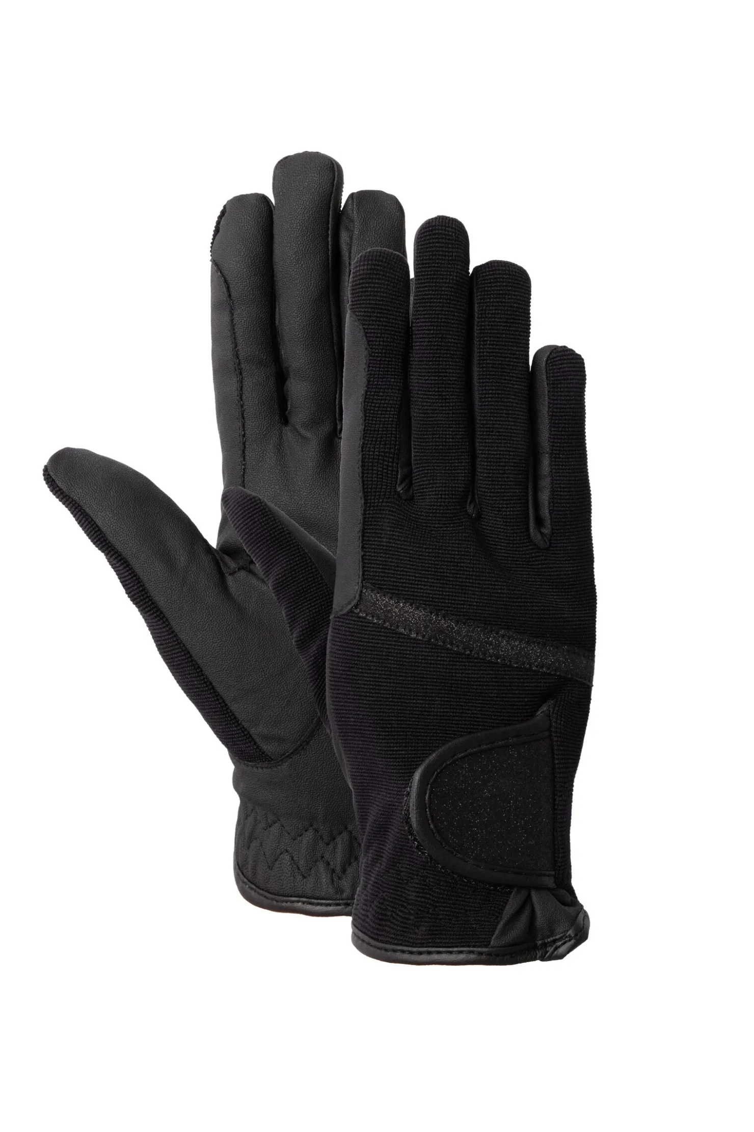 Disse elegante, godt tilpassede hanskene kommer med glitrende detaljer for å lyse opp de kalde dagene. Det varme fôret beskytter hendene dine fra kulden. Det elastiske materialet strekker seg etter hånden din, og PU-læret gir utmerket grep når du rir.