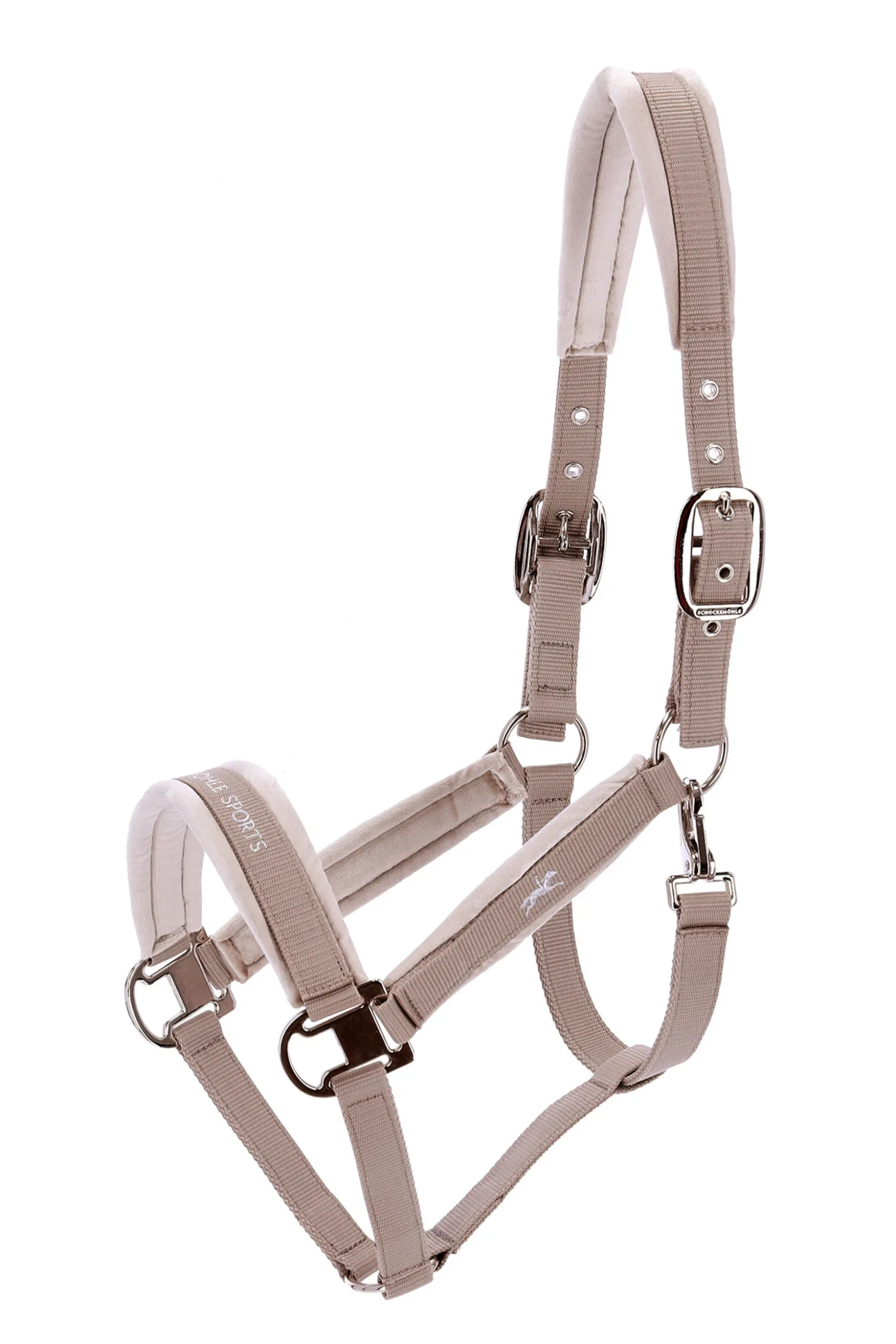 Den edle nylonhalstern Soft Velvet Halter Style fra Schockemöhle Sports imponerer med sitt velurpolstrede hodelag, nesereim og kinnstykker. Utseendet til Soft Velvet Halter Style avrundes av nesereimen og kinnstykkene.