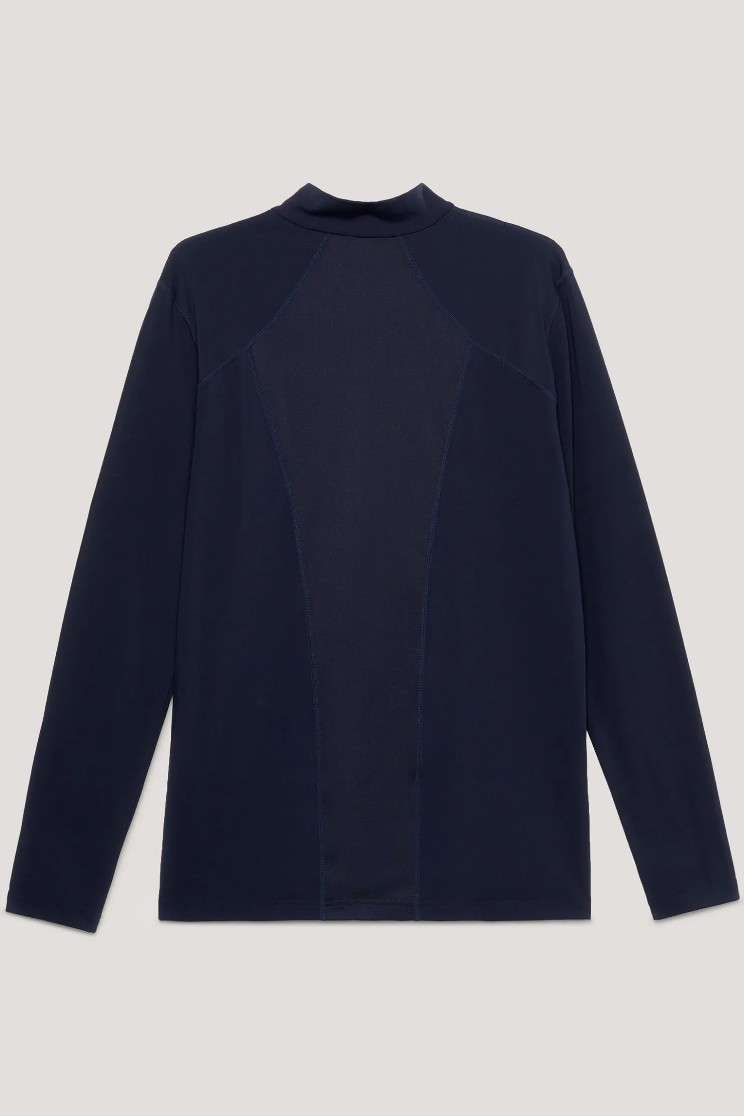 Vår tekniske langermede T-skjorte med logotrykt glidelåshals foran og flagglogo på brystet. Designet med reaktivt varmebalansestoff, ble denne treningstoppen laget for å fungere alene eller som et første lag som frigjør varme i varmere temperaturer og låser den inne når været avkjøles. Med bi-material konstruksjon for komfort og ytelse er dette overgangsbaselaget designet med den seriøse rytteren i tankene.