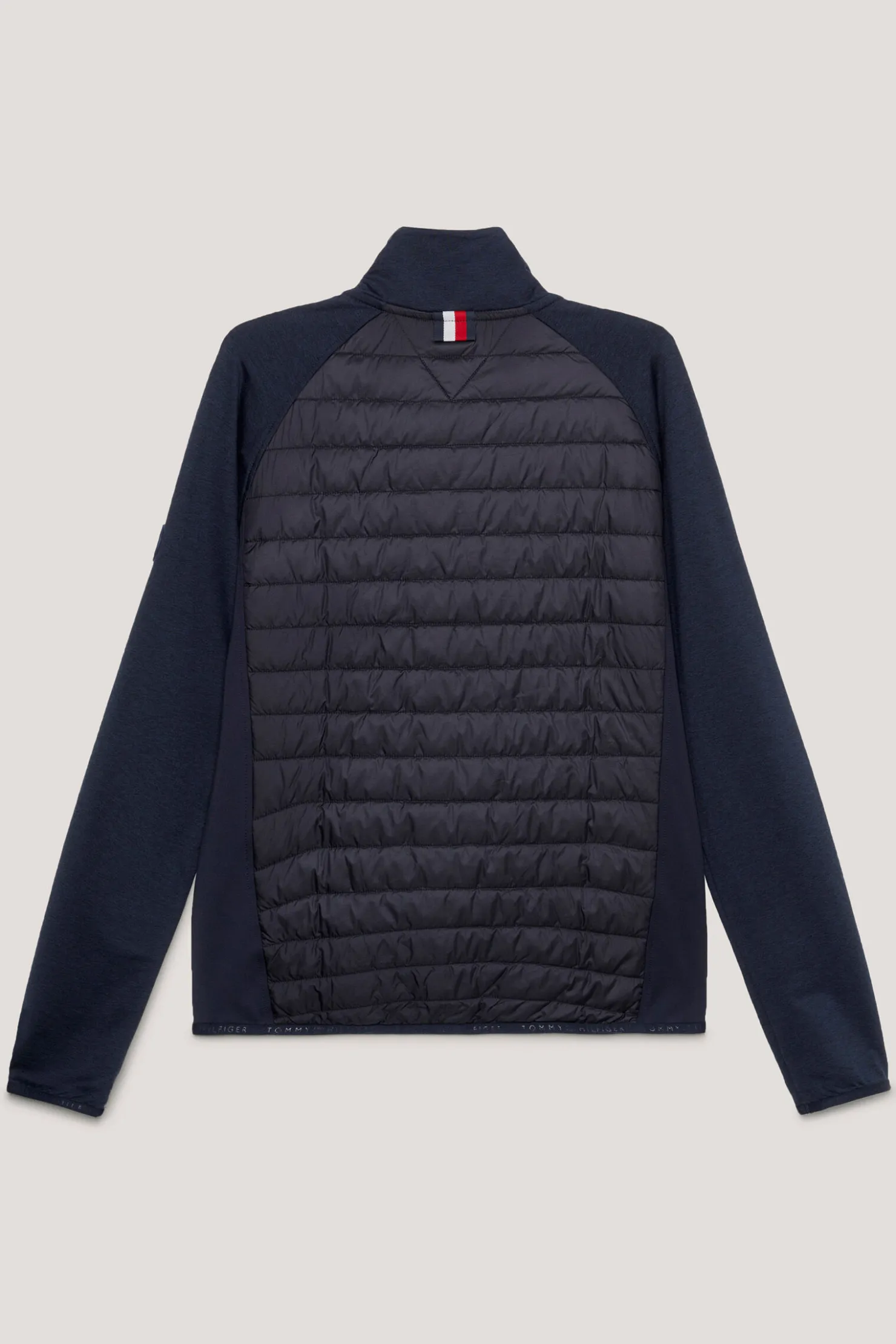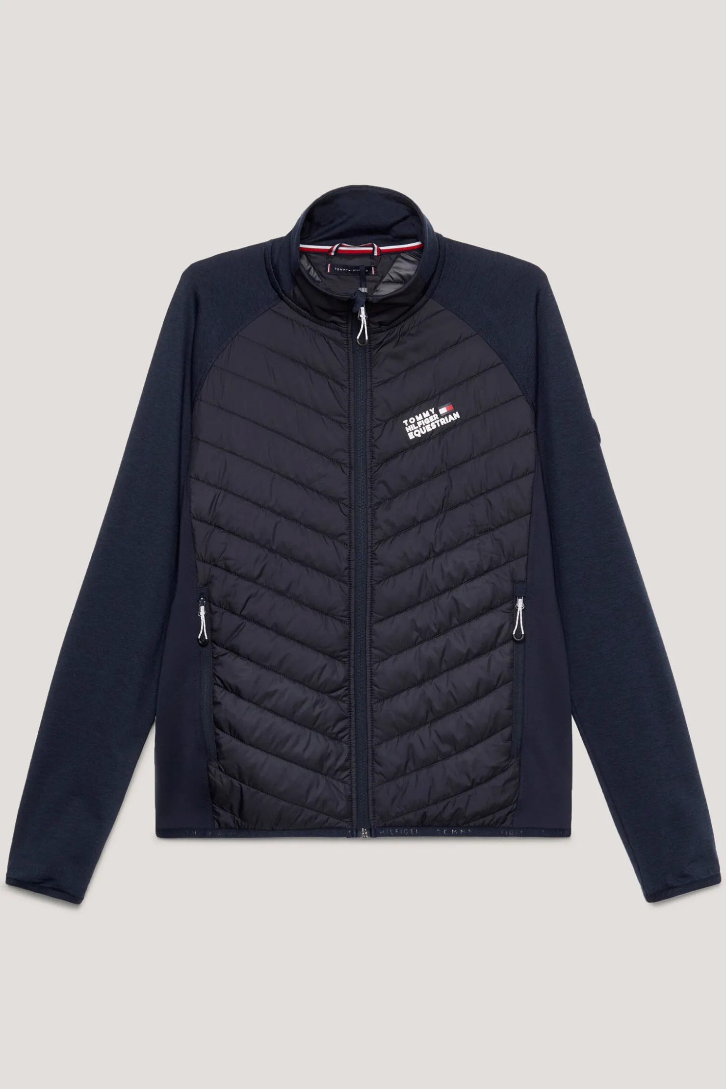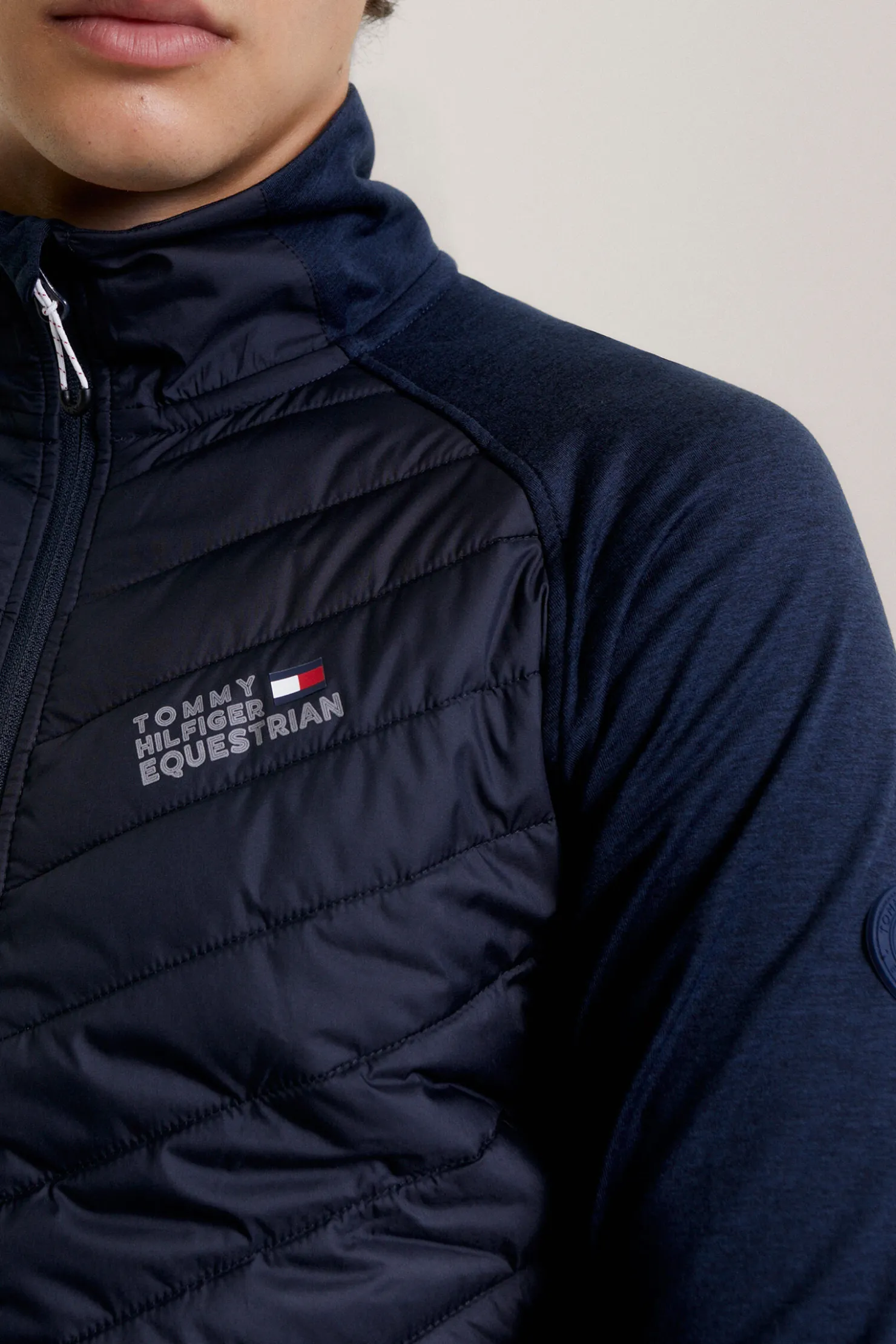 Perfekt for å holde deg varm samtidig som den gir maksimal fleksibilitet. Vår hybridjakke har en stretch-erme og sidepaneler for mer bevegelsesfrihet. Denne jakken er designet med reaktivt varmebalansestoff og er laget for å frigjøre varme i varmere temperaturer og låse den inne når været avkjøles. Med tomaterialskonstruksjon for komfort og ytelse, reflekterende Tommy Hilfiger-logotrykk på brystet. 100 % resirkulert polstring inni for den mer bærekraftig bevisste rytteren.